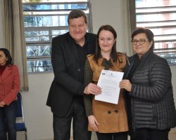 O prefeito Luciano Buligon e a Secretária de Educação Sandra Maria Galera empossaram, nesta terça-feira (07/08), 96 professores aprovados no concurso público 001/2017, realizado pela Fundação de Estudos e Pesquisas Socioeconômicos (FEPESE), em 11 de março de 2018, com cerca de 3.500 inscritos.