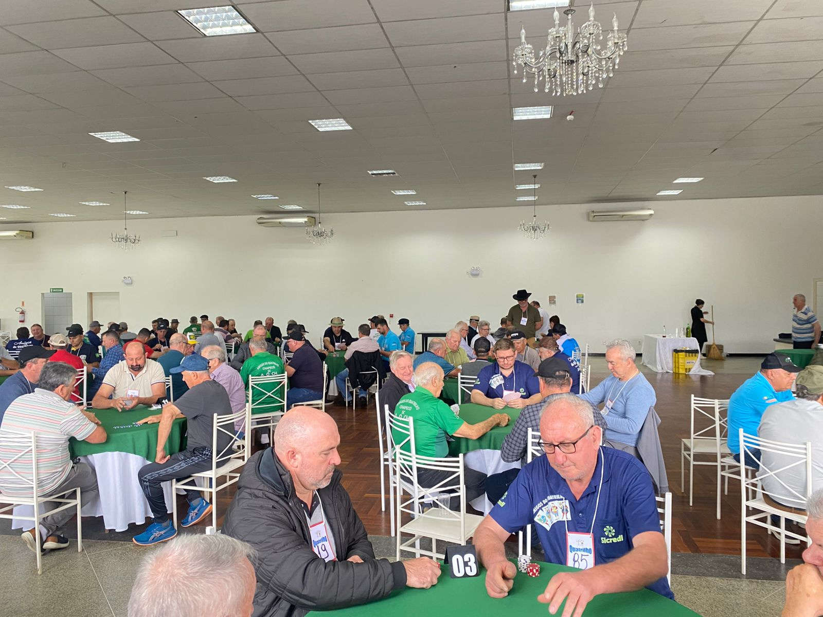 No sábado, às 09h, ocorreu a abertura oficial do Campeonato Aberto de Quatrilho. O Diretor Geral da Secretaria de Esportes e Juventude, Tiago Breitembach, prestigiou o evento e comentou: acompanhei ontem o Campeonato Municipal e fiquei impressionado com a habilidade e estratégia demonstradas no jogo de Quatrilho. A competição foi acirrada e de alto nível; o trabalho em equipe também precisa ser destacado. Esperamos hoje também uma disputa de alto nível. Chapecó está feliz em receber vocês aqui.