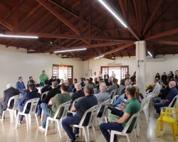 Faltam 40 dias para começar a Efapi do Brasil e para tratar dos encaminhamentos de uma das maiores feiras multissetoriais do país, foi realizada na manhã desta segunda-feira (1) uma reunião com cerca de cem pessoas, no Parque de Exposições Dr. Valmor Ernesto Lunardi. Estiveram presentes o prefeito de Chapecó, João Rodrigues, o vice-prefeito, Valmor Scolari, o presidente da Comissão Central Organizadora (CCO), Felipe Balzan, o coordenador-adjunto, Luiz Roberto Tillmann, representantes das comissões setoriais, da Celesc e da Casan.
