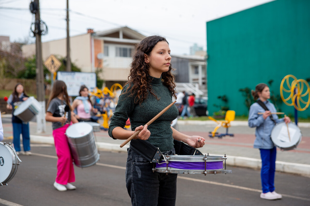 A atividade envolve os estudantes do tempo integral dos centros multiuso e da Escola Básica Municipal Cívica de Inovação e Tecnologia Eli Maria Bellani, e é realizada pelo professor de percussão Alexandre Antunes de Almeida, da secretaria Municipal de Cultura, juntamente com a professora Juliana Winckler. A iniciativa fortalece o espírito cívico por meio da música e incentiva a integração entre as escolas participantes.