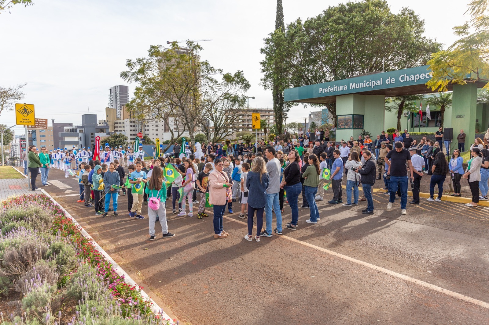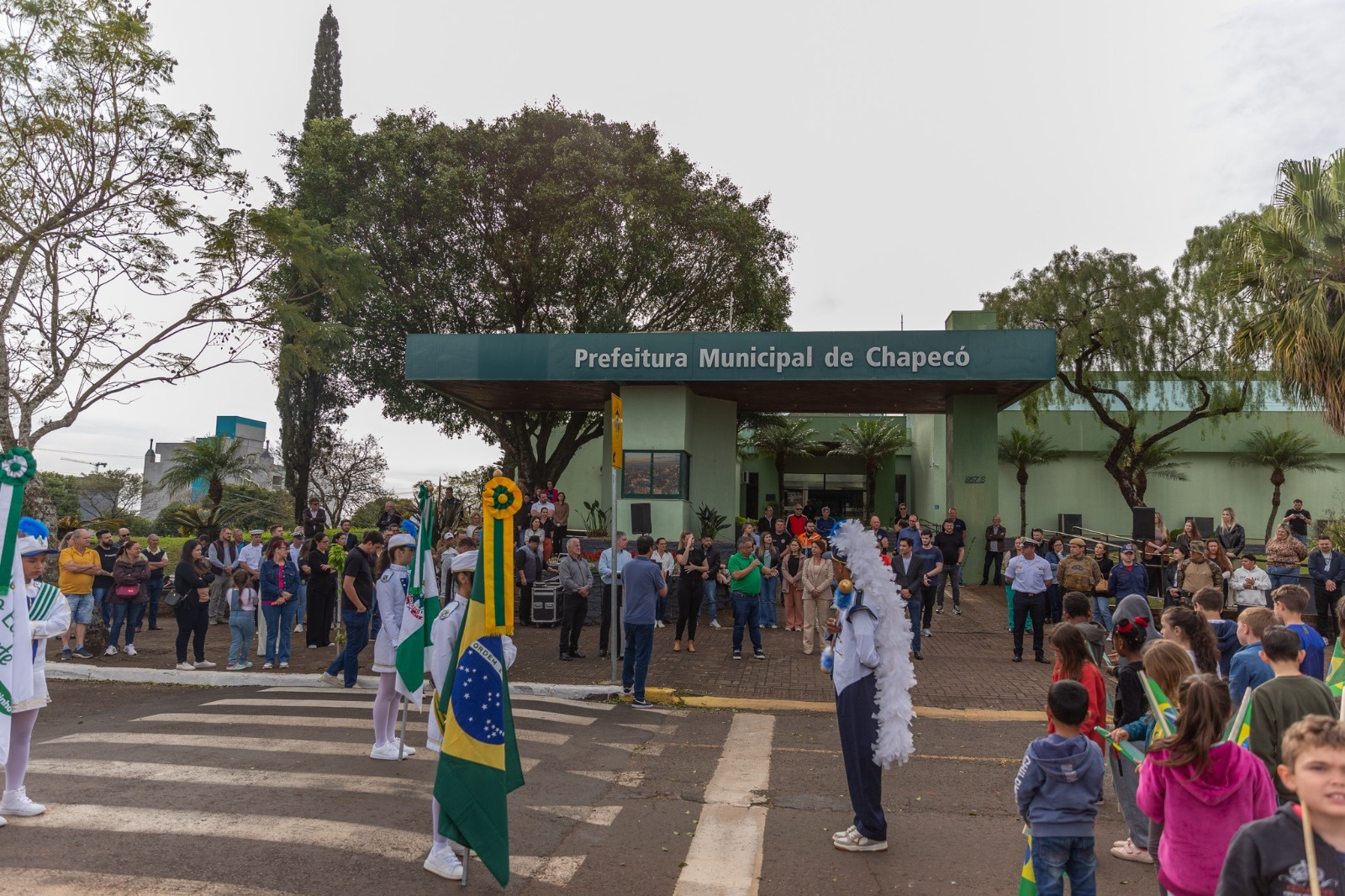 A Prefeitura de Chapecó, por intermédio da secretaria municipal de Educação, realizou na manhã desta segunda-feira (01), a abertura da Semana da Pátria, que aconteceu na avenida Getúlio Vargas, em frente ao prédio da administração municipal. No local, também foi trocada a bandeira do município pela bandeira do Brasil. Autoridades políticas e das forças de segurança participaram da solenidade.