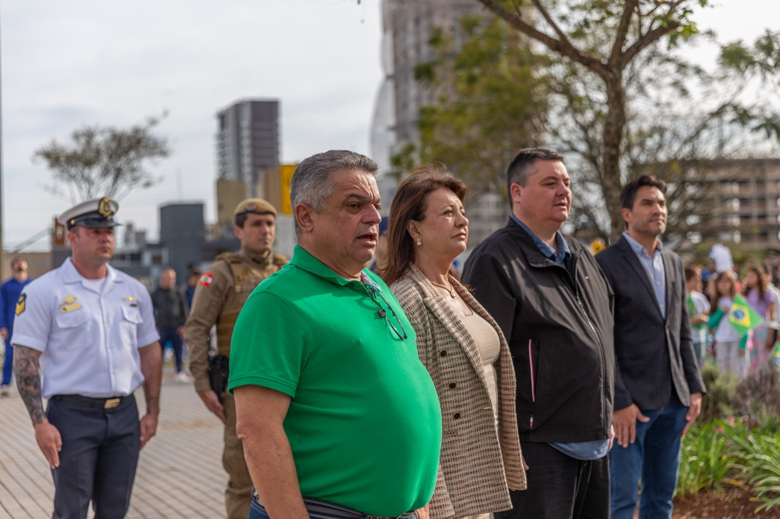 O tenente-coronel Rafael Antônio da Silva, comandante do 2º BPM, destacou que a Polícia Militar desde o início tem defendido a independência do Brasil e continua garantindo o estado democrático de direito. Também ressaltou que o patriotismo não deve ser exercido apenas nesta semana, mas sim durante o ano inteiro. Já o vereador Nivaldo Rosa, representou o legislativo chapecoense e destacou a necessidade de ter um povo livre para que possa promover o desenvolvimento econômico e social da nação.
