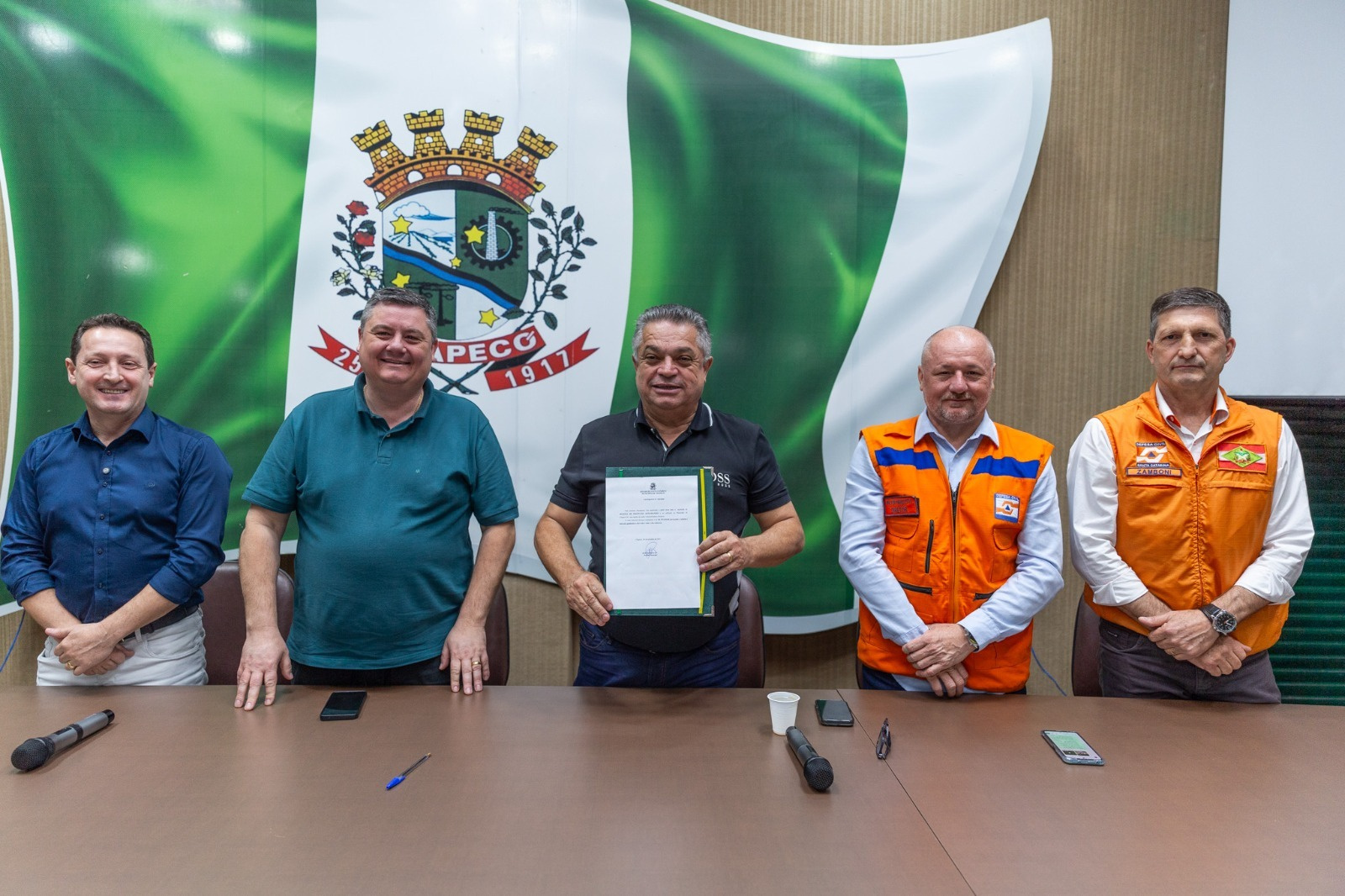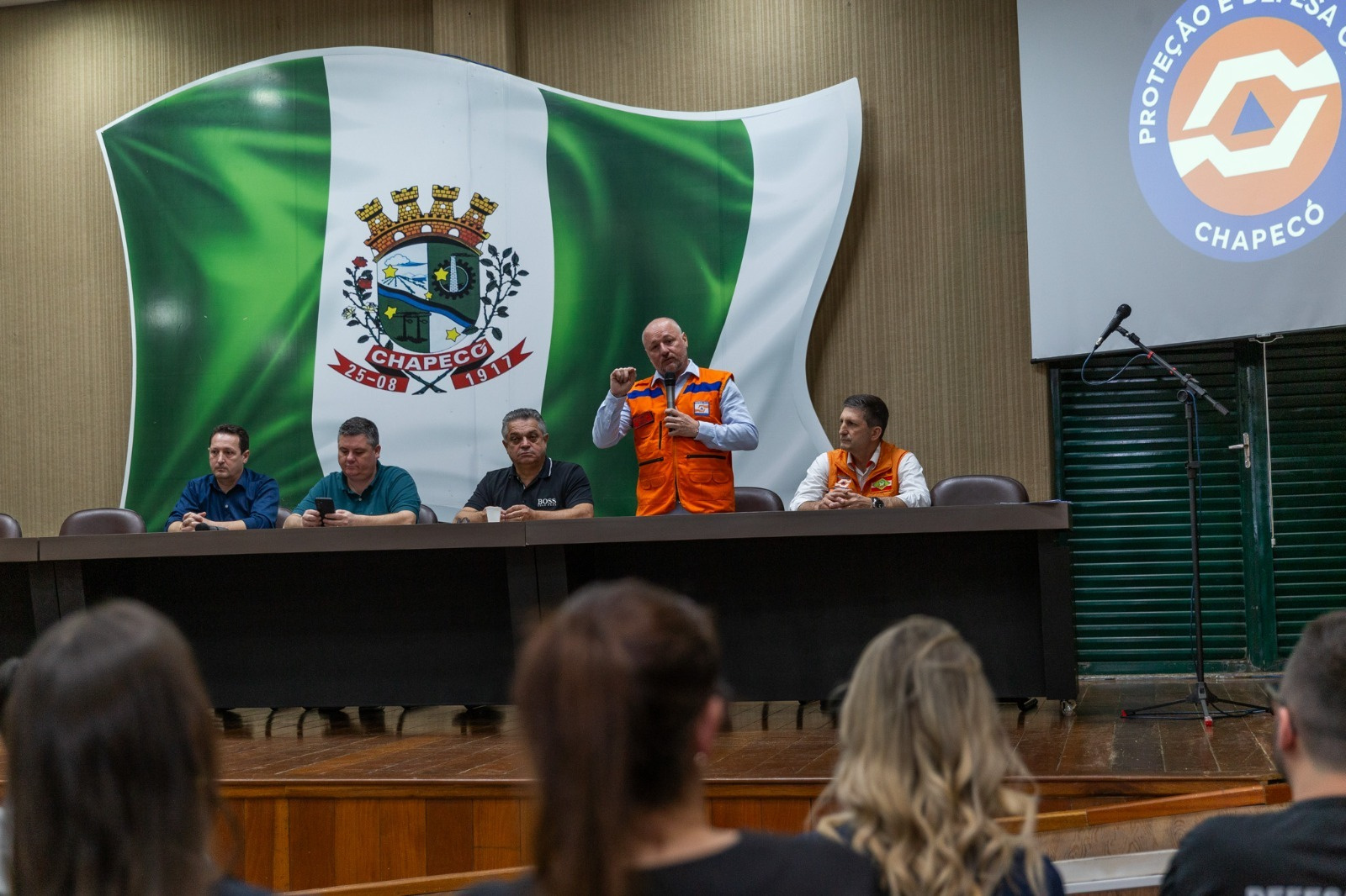 O Plano Municipal de Contingência foi assinado na manhã desta quinta-feira (04), no auditório da Prefeitura de Chapecó, pelo prefeito João Rodrigues. O documento elaborado pela Defesa Civil Municipal, organiza como o município deve prevenir, se preparar e responder diante de situações de emergência ou desastres. Também foi assinado contrato de aquisição do equipamento antigranizo.