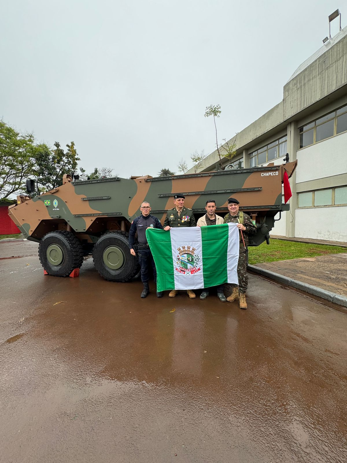 Chapecó esteve representada pelo diretor de Segurança e Ordem Pública, Roger Lima. Ele entregou uma bandeira do município ao comando do Regimento como símbolo de integração e reconhecimento. O comandante da Guarda Municipal de Chapecó, Luiz Antônio Stobe, também esteve presente no ato.