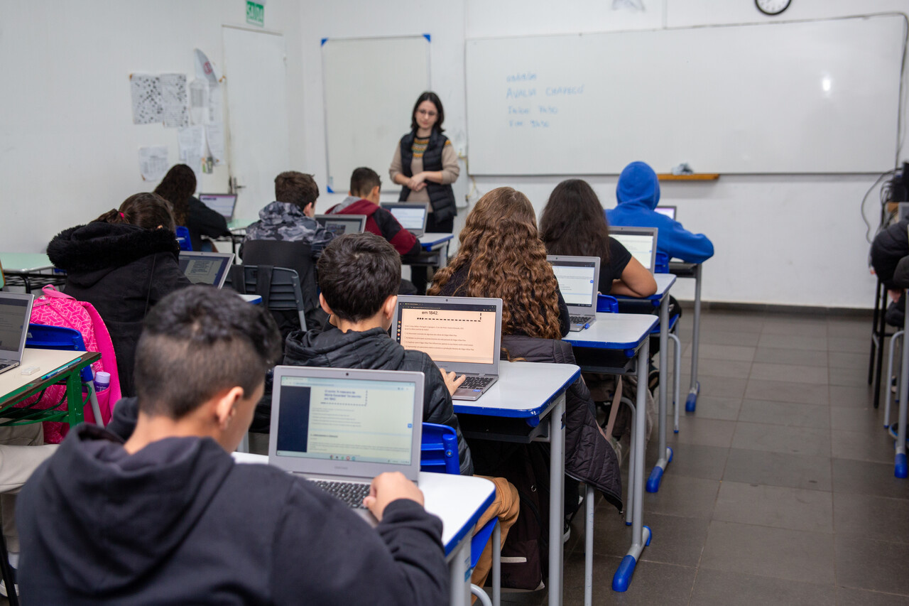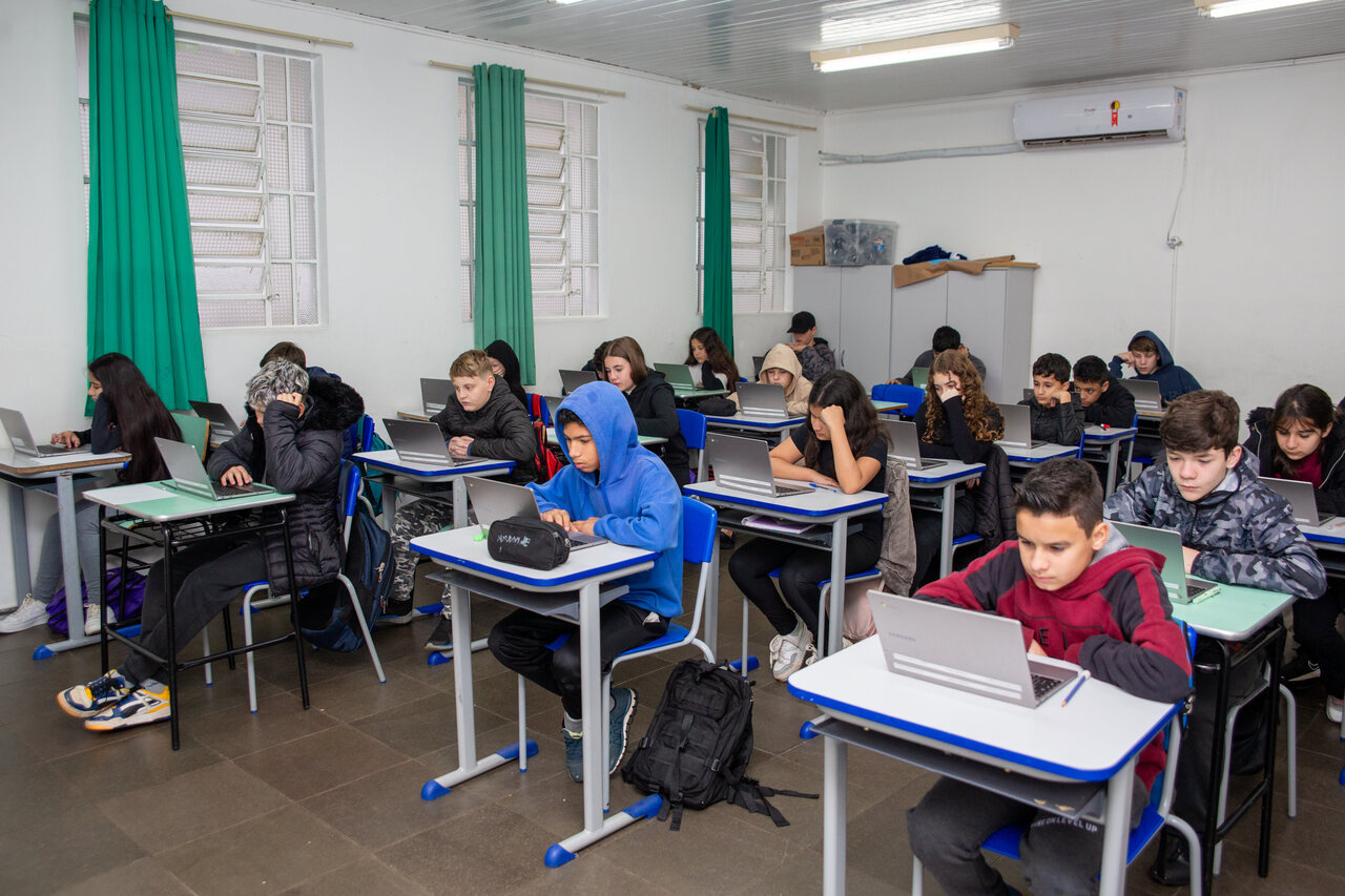 A aplicação ocorrerá de duas formas. Para as turmas de 1º, 2º ano e Educação de Jovens e Adultos serão disponibilizadas provas impressas. Para as turmas de 3º ao 9º ano, as mesmas serão realizadas online, através dos Chromebooks, desta forma, cada estudante utiliza o próprio equipamento para responder às questões.