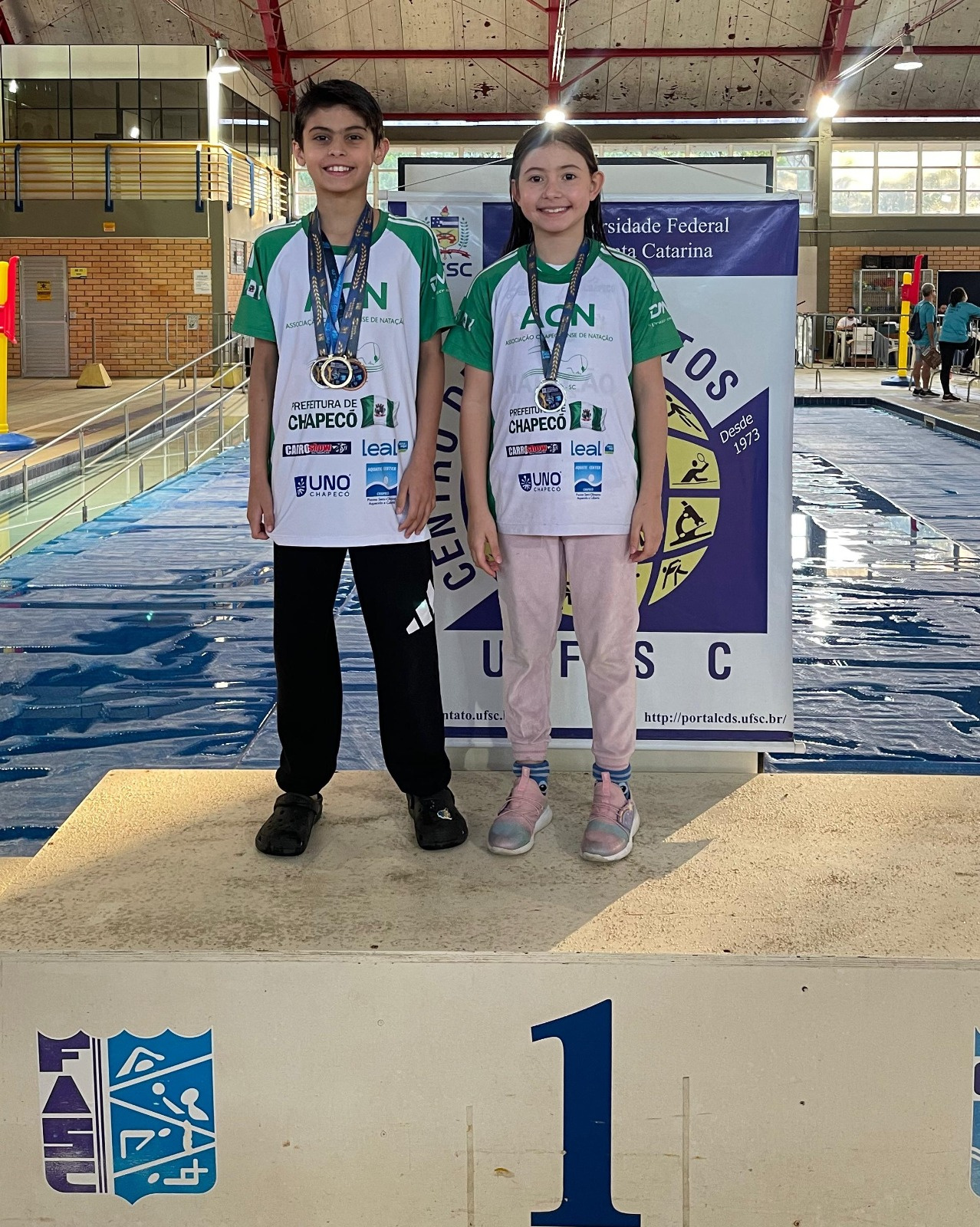 Ainda comemorando os bons resultados obtidos no Chile no início do mês, a equipe de natação da PREFEITURA MUNICIPAL DE CHAPECÓ / ASSOCIAÇÃO CHAPECOENSE DE NATAÇÃO / AQUATIC CENTER / UNOCHAPECÓ / DM TURISMO / LEAL ASSESSORIA / CARRO SHOW MULTIMARCAS / INVOICE / BRASÃO SUPERMERCADO / SICOOB / KROSS ATACADISTA, retornou às competições nos dias 12 e 13 de setembro.