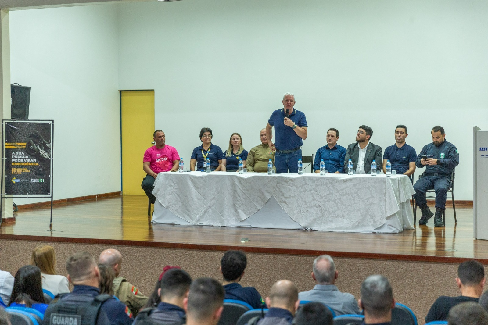 O secretário de Segurança Pública de Chapecó, Clovis Ari Leuze, destacou a importância de falar sobre o trânsito e como todos precisam fazer a sua parte para ter um trânsito seguro. Ele destacou ainda que os índices de violência no trânsito são maiores do que das ocorrências urbana. Muitas pessoas feridas e afastadas do trabalho. A consciência de cada um é essencial. Precisamos dirigir pensando no outro também, sempre com o máximo de cuidado, comentou.
