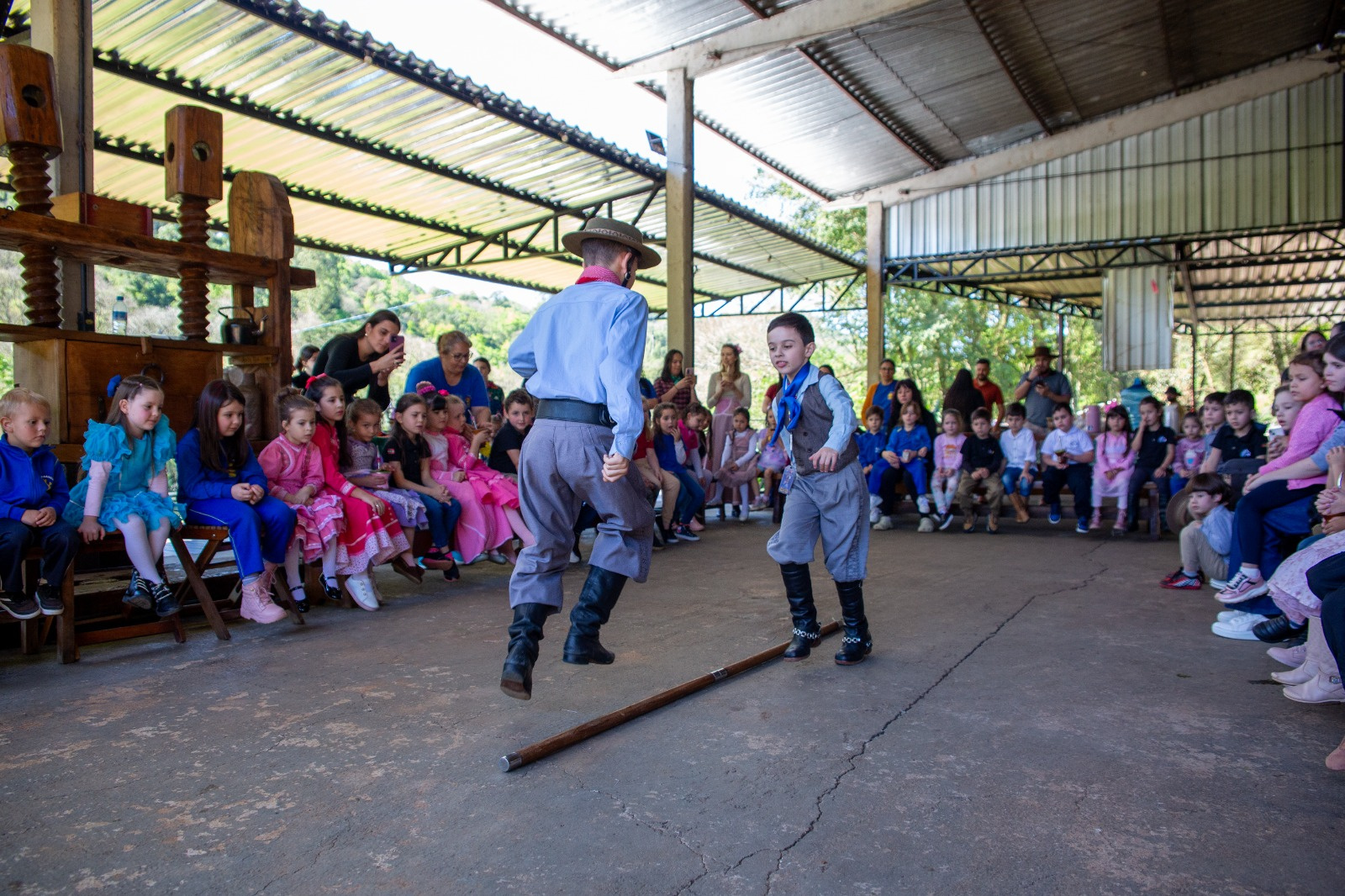 O evento também contou com a participação especial das famílias. João Vaz, avô de um dos estudantes, falou com orgulho sobre o momento. É uma grande honra estar aqui. Meu neto estuda na escola, e fico emocionado em ver como ele está sendo incentivado a conhecer e valorizar a cultura gaúcha. Ver ele trajado de gaúcho me faz sentir que nossa cultura está sendo passada adiante, relata.