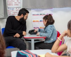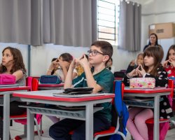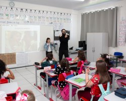 A Secretária de Educação, Astrit Tozzo, destacou que o trabalho do professor instrutor surdo vai além das aulas no contraturno escolar. Na Rede Municipal de Ensino também são realizadas intervenções nas turmas regulares que possuem alunos surdos matriculados, ensinando Libras para os demais estudantes, fortalecendo a comunicação e promovendo a consciência sobre a importância da língua de sinais para toda a comunidade escolar, explicou.