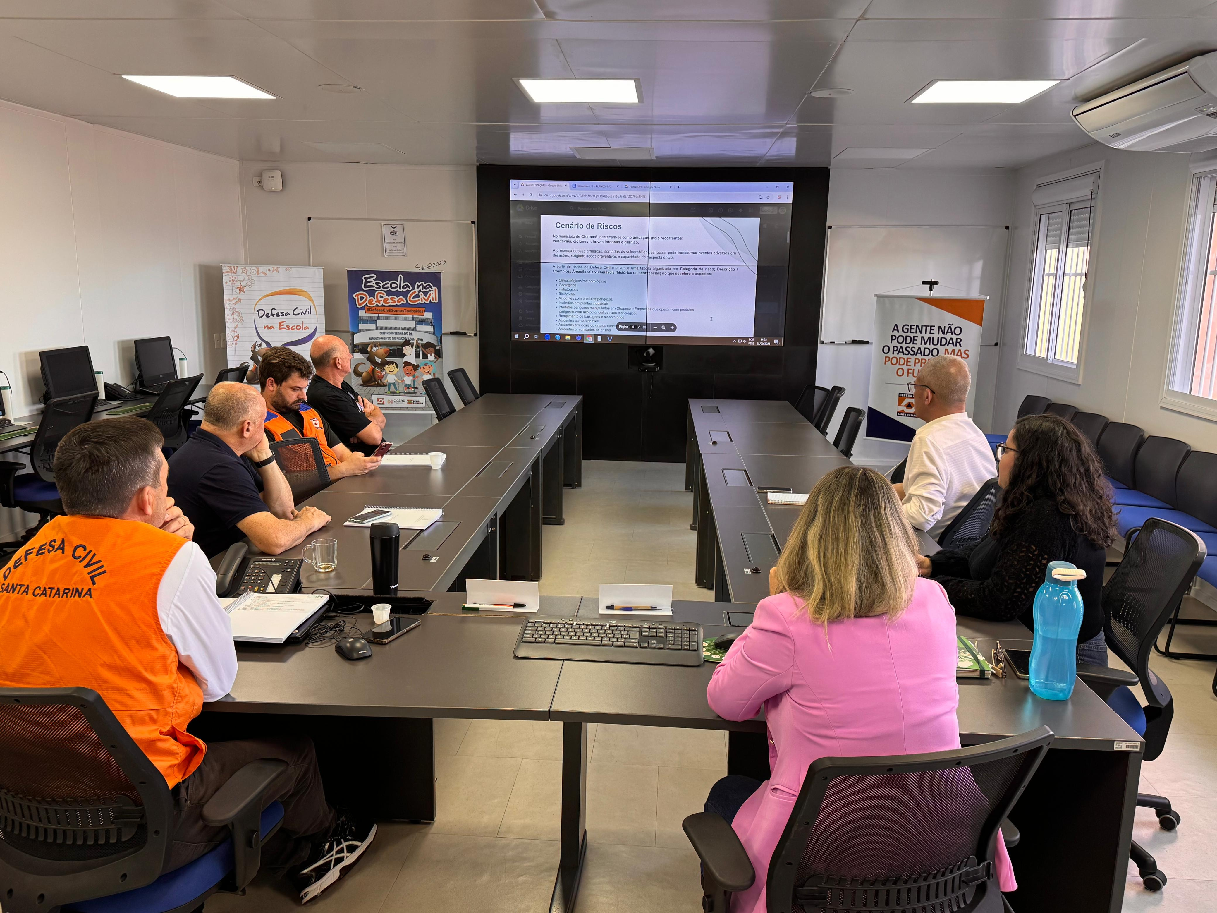 A prefeitura de Chapecó, por meio da Defesa Civil Municipal, elaborou um Plano de Contingência, que na tarde de quinta-feira (25) foi apresentado na secretaria da Família e Proteção Social. Estiveram presentes o secretário da pasta, Luciano Hüning, o 1º Sargento BM Vilson Antônio Zamboni, representante da Defesa Civil do Estado de Santa Catarina, e Walter Parizotto, diretor da Defesa Civil de Chapecó.
