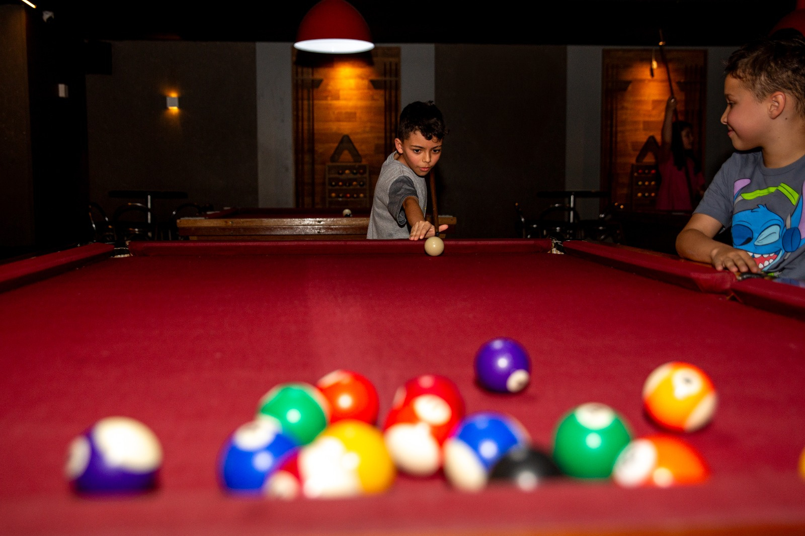 O estudante Richard Batistello Bordin, do 4º ano, compartilhou sua experiência com a sinuca. Eu aprendi muita coisa com o meu pai sobre a sinuca. Agora, estou aprendendo ainda mais com essa experiência. Por exemplo, não precisa bater forte na bola, é mais jeito e habilidade do que força, comenta.