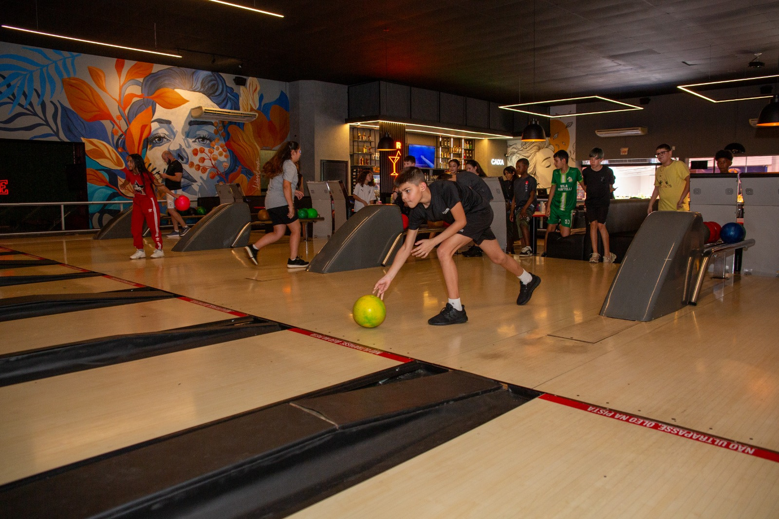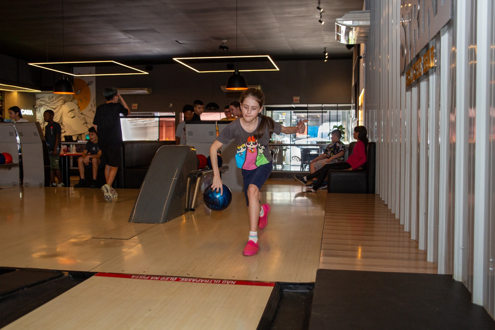 Já para Jhulia Dallabrida, do 5º ano, o contato com o boliche foi uma novidade. Eu nunca tinha vindo aqui. Achei uma experiência bem legal. Aprendi novas coisas sobre os esportes de precisão. É preciso foco e concentração para acertar, relata.