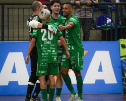 A Prefeitura de Chapecó/Chapecoense/Unochapecó está a um empate das quartas de final do Campeonato Brasileiro de Futsal. O Verdão das Quadras venceu o primeiro compromisso pelas oitavas, diante do São Joseense, por 2 a 0, na noite desta sexta-feira (26). O jogo foi disputado no Ginásio Max Rosenmann, em São José dos Pinhais (PR).