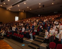 A tarde do último sábado (27) foi marcada pela emoção e reconhecimento durante a Cerimônia de Premiação da 19ª Olimpíada Brasileira de Matemática das Escolas Públicas e Privadas (OBMEP), realizada no Teatro Centro de Cultura e Eventos Plínio Arlindo de Nes. O evento reuniu autoridades, professores, estudantes e familiares para celebrar as conquistas de alunos que se destacaram no estudo da matemática. A Rede Municipal de Ensino de Chapecó obteve resultados de destaque. Na edição de 2024, 2 alunos conquistaram medalha de prata, 17 receberam medalha de bronze e 30 foram premiados com menção honrosa.