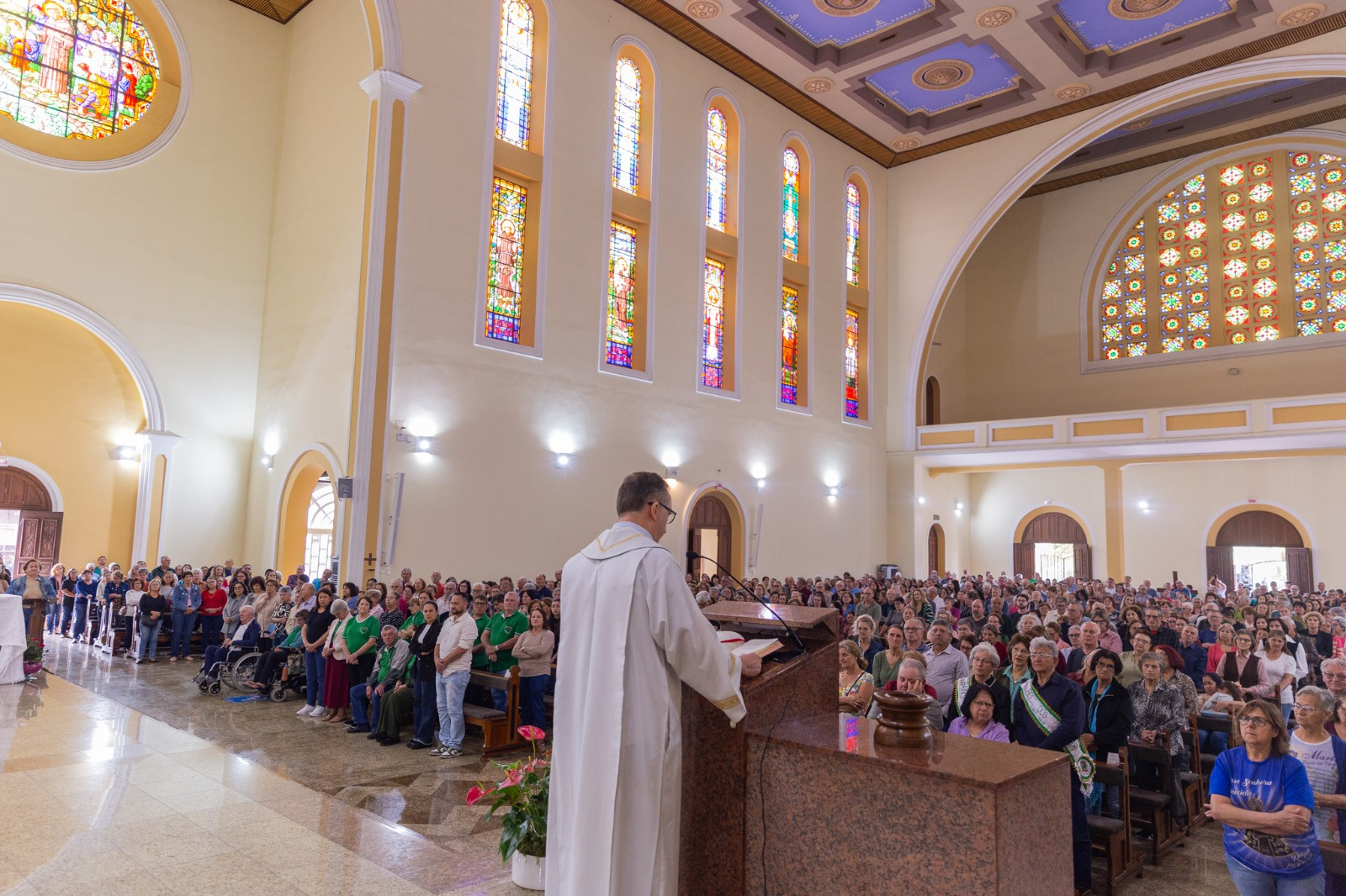 A prefeitura de Chapecó, por meio da secretaria da Família e Proteção Social, organizou uma missa em celebração ao Dia Internacional do Idoso, na tarde de quarta-feira (1), na Catedral Santo Antônio. Além da missa conduzida pelo arcebispo Dom Odelir Magri, a tarde foi marcada por homenagens e momentos de grande emoção para todos os presentes. Estiveram presentes o secretário da Família e Proteção Social, Luciano Hüning, e a primeira-dama do município, Fabiana Rodrigues, parabenizando todos os idosos e os homenageados.