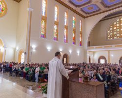 A Prefeitura de Chapecó, por meio da Secretaria da Família e Proteção Social, organizou uma missa em celebração ao Dia Internacional do Idoso, na tarde de quarta-feira (1), na Catedral Santo Antônio. Além da missa conduzida pelo arcebispo Dom Odelir Magri, a tarde foi marcada por homenagens e momentos de grande emoção para todos os presentes. Estiveram presentes o secretário da Família e Proteção Social, Luciano Hüning, e a primeira-dama do município, Fabiana Rodrigues, parabenizando todos os idosos e os homenageados.