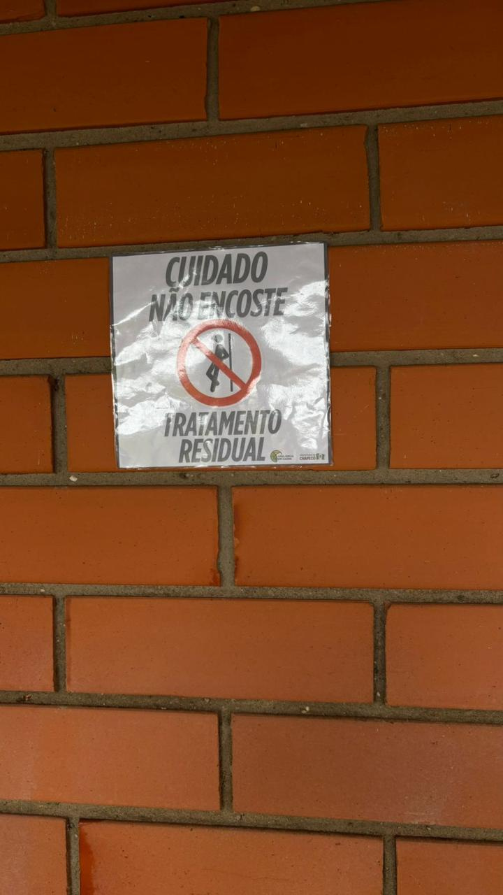 Para reforçar a segurança e a informação à população, todos os locais que recebem a aplicação do inseticida estão devidamente identificados com placas contendo o aviso: Cuidado! Não encoste tratamento residual, destacando que a área foi tratada e segue protegida contra o mosquito.
