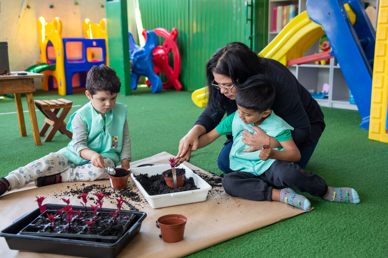 As crianças, junto com a professora Leia Trindade, aprenderam sobre as partes que compõem uma planta e os cuidados essenciais para o seu crescimento saudável. As crianças observaram como é a raiz, o caule, as folhas e as flores de cada planta. A partir disso trabalhamos com diferentes atividades, como desenhos, tentativas de escrita e vivências em que elas tiveram contato com elementos da natureza, explica a professora.