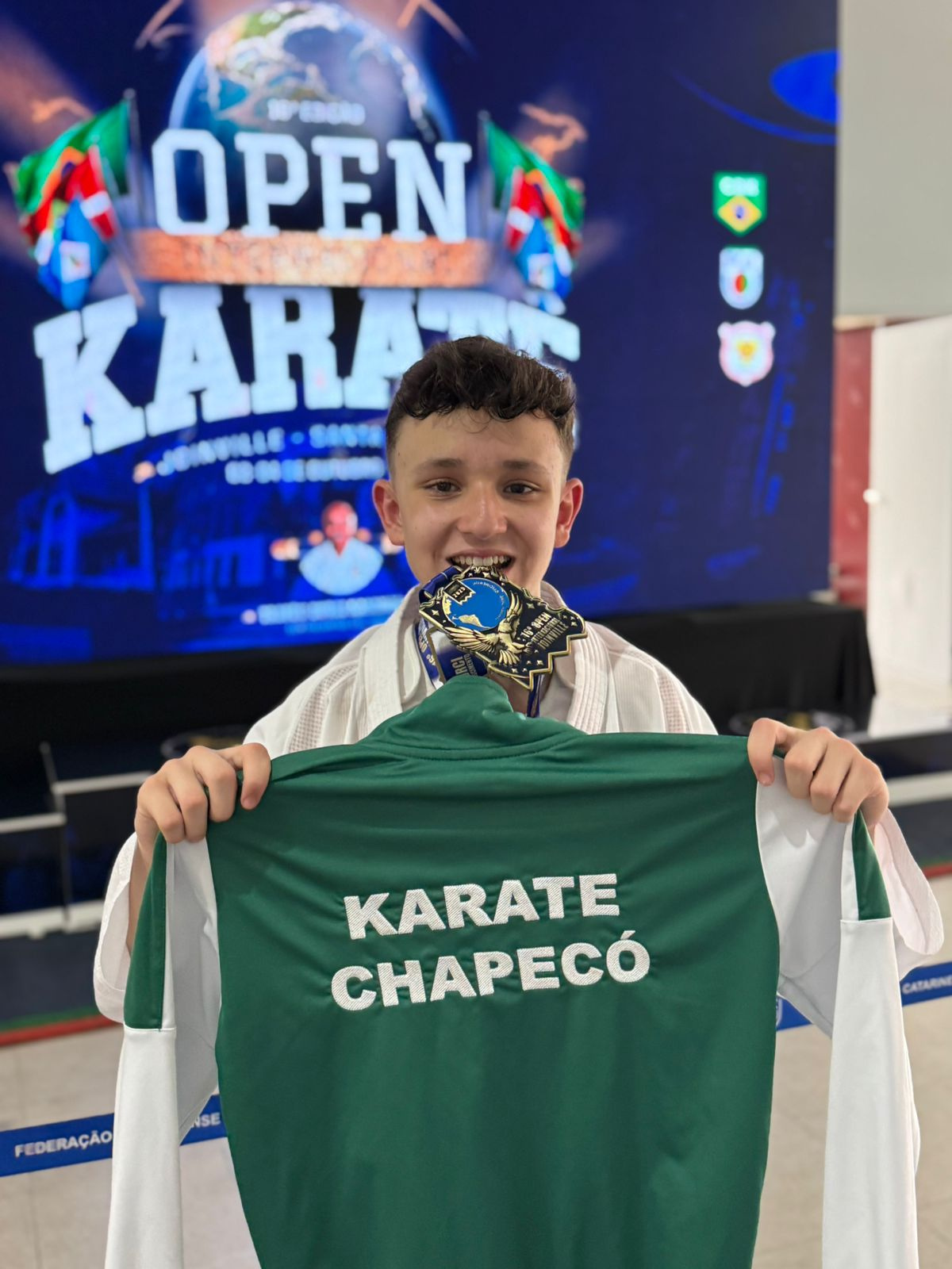 O atleta Matheus Augusto Kerstik, da equipe Unochapeco/ Arawaza Brasil/ Prefeitura de Chapecó de Karatê, foi campeão do Open Internacional na cidade de Joinville, disputado no sábado (4). Ele foi o melhor na categoria kumite sub-14, até 55 quilos.