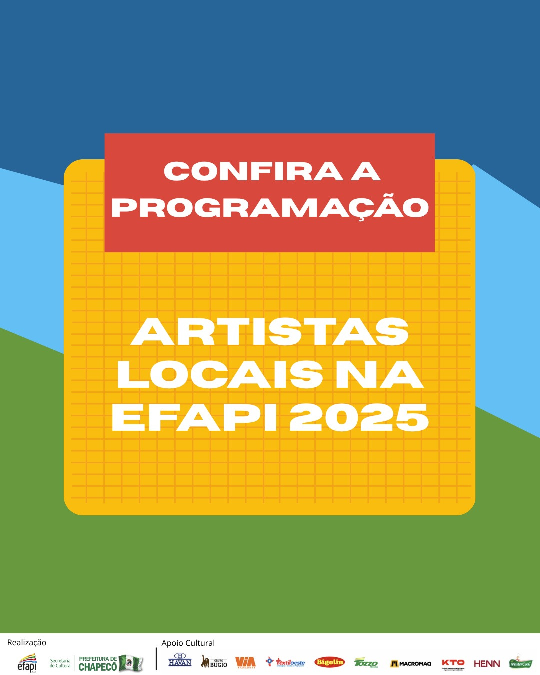 A prefeitura municipal de Chapecó, por meio da Secretaria de Cultura, divulgou as atrações locais que comporão a programação do Palco Nossa Arte, espaço dedicado à apresentação de artistas chapecoenses na Efapi do Brasil 2025.