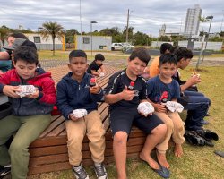 Nesta quarta-feira (8) o Secretário da Família e Proteção Social, Luciano Huning, esteve presente no Parque Edi de Marco, acompanhando as atividades e interagindo com as crianças, celebrando esse momento de alegria e integração.
