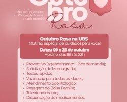 Até o dia 23 de outubro, das 18h às 22h, as Unidades Básicas de Saúde promoverão um mutirão especial de cuidados para as mulheres chapecoenses, com oferta de: