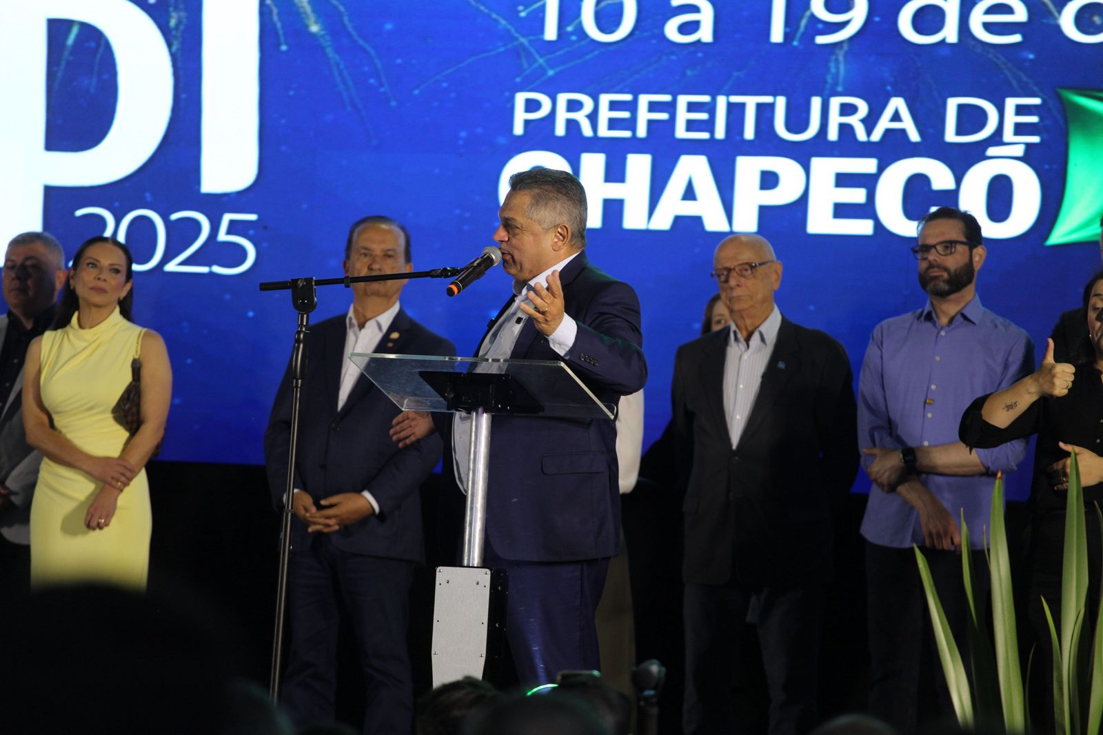 O prefeito de Chapecó, João Rodrigues, lembrou dos pioneiros que criaram a Efapi, entre eles Valmor Lunardi, que dá nome ao Parque de Exposições. "Nunca deixem de sonhar e empreender. Este parque foi sonhado pelos pioneiros. Eles e muitos que nos sucederam ajudaram a transformar essa cidade na capital do turismo de negócios. Tivemos um crescimento de 130% no turismo no último ano. Somos o maior polo mundial da indústria da transformação. Mesmo com dificuldades em logística, como da BR-282, exportamos para o mundo. Aqui geramos emprego que atraem migrantes e imigrantes. O Salão imobiliário da Efapi mostra o quanto o empresário acredita em Chapecó. Aos visitantes, bem-vindos à maior expofeira deste país, aqui na cidade de Chapecó", disse Rodrigues.