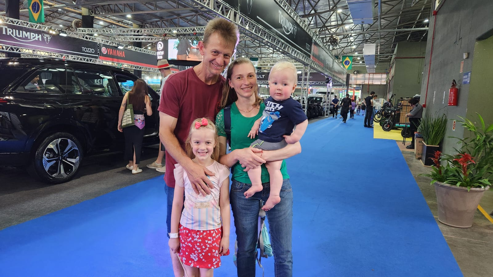 A família de Paial, que aproveitou o sábado (11) para conhecer a feira, se surpreendeu com a edição deste ano. Está muito linda e segura a feira. As pulseiras são uma segurança a mais em caso de descuido. As crianças ficam protegidas e, em caso de emergência, fica fácil de nos encontrar, destaca Carlos Doding. Ele veio com a esposa Simone, o filho Matias e a Letícia, de cinco anos.