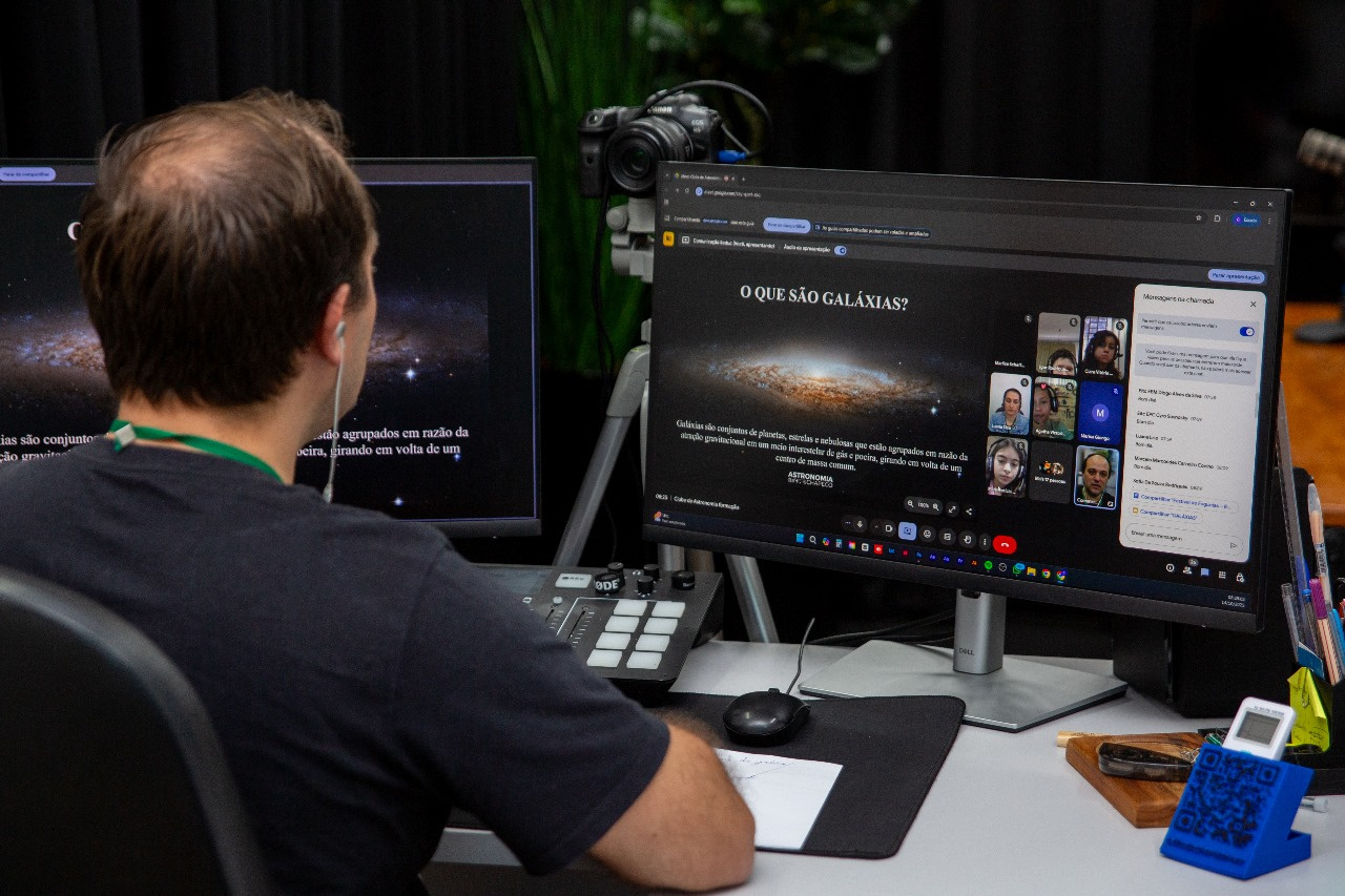 Nesta terça-feira (14), estudantes e professores dos Clubes de Astronomia e Astronáutica da Rede Municipal de Ensino, conhecidos como Desbravadores do Universo, participaram de um momento de estudo com foco especial nas galáxias.