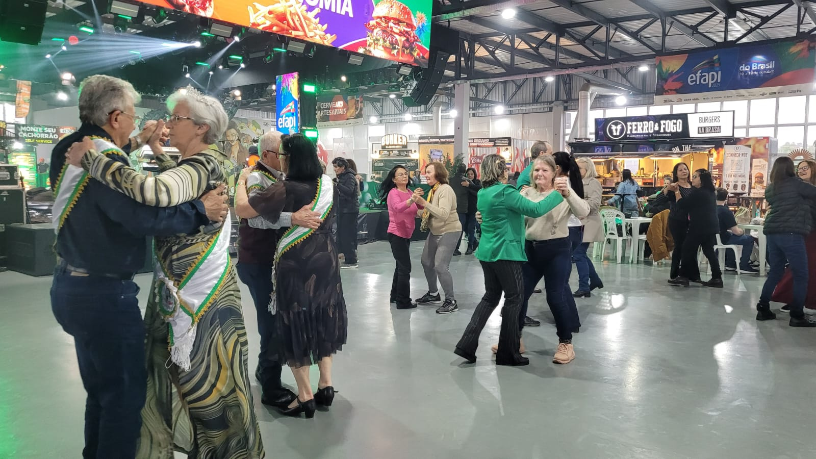 O som e a banda foram escolhidos com cuidado, e o espaço da dança foi montado no Espaço Bier, onde ficam as cervejarias. Segundo Huning, o objetivo foi criar um ambiente acolhedor e divertido. O presidente da Comissão Central Organizadora da Efapi, Felipe Balzan, também ressaltou que a feira é feita para todos. A Efapi é um evento para toda a família, independente da idade. Temos uma programação que acolhe desde as crianças até os idosos, para que todos levem boas memórias dessa edição, afirma.