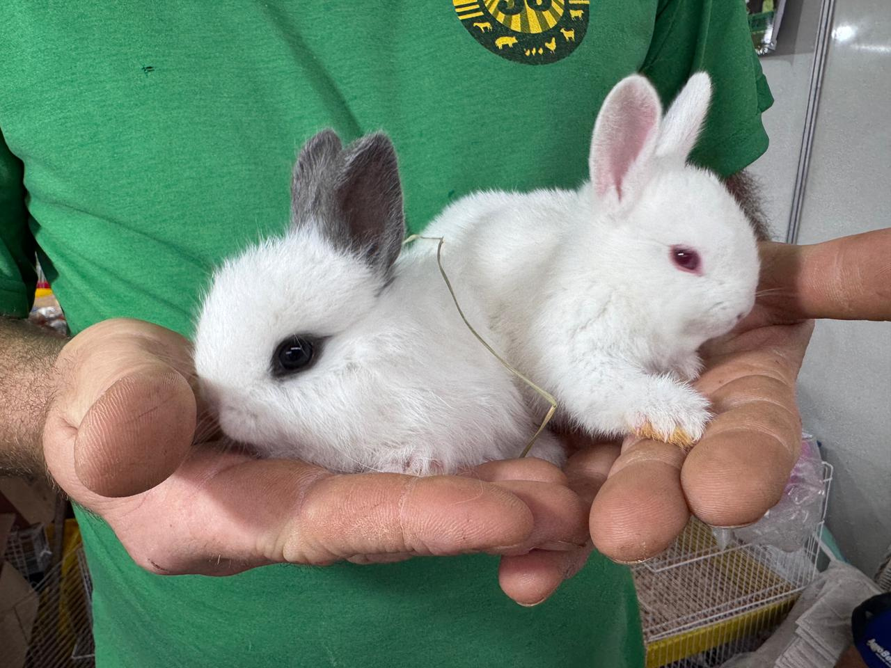 Juliano atua há 20 anos com criadouros de aves, cães e coelhos, e há oito anos dedica-se à criação e ao aprimoramento genético de coelhos, especialmente da raça Netherland Anão. Trabalhamos sempre para melhorar a genética e manter o padrão da raça: pequeno porte, orelhas curtas e um temperamento tranquilo, completa. Os coelhos estão sendo comercializados na feira ao valor de R$180.