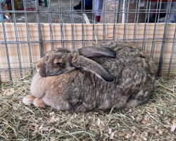 Além dos coelhos anões, o público pode conhecer também o Gigante de Flandres, uma das maiores raças de coelhos do mundo, que chega a pesar até 12 quilos. O exemplar exposto na feira não está à venda, mas foi levado especialmente para demonstrar o contraste de tamanho entre as raças.