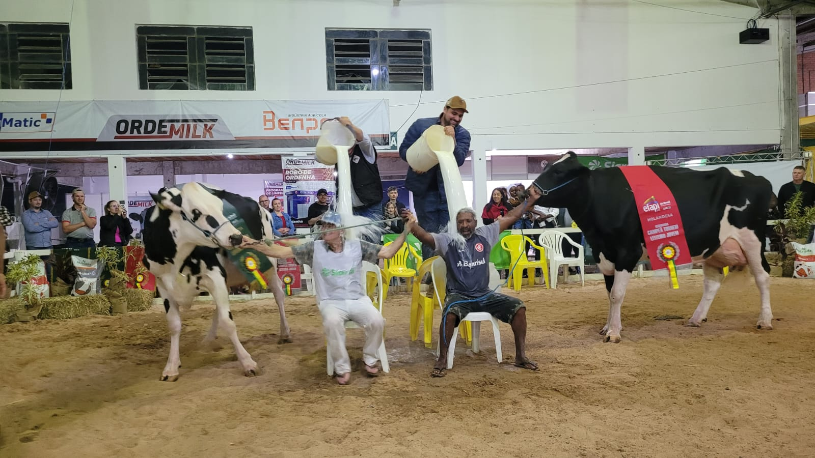 Ele destacou que a disputa é dividida em duas categorias: até 36 meses (animais jovens) e acima de 36 meses (adultos), premiando o campeão e o reservado de cada uma. Na raça Jersey, a vencedora na categoria até 36 meses produziu 38,8 litros, e a adulta alcançou 58,7 litros ao longo de um dia, informou.
