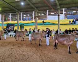 Na categoria vaca adulta da raça Jersey, o título de grande campeã ficou com o animal de propriedade de Carlos Jacob Wallauer, de Salvador do Sul (RS), que se destacou pela excelente conformação e equilíbrio funcional.