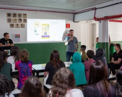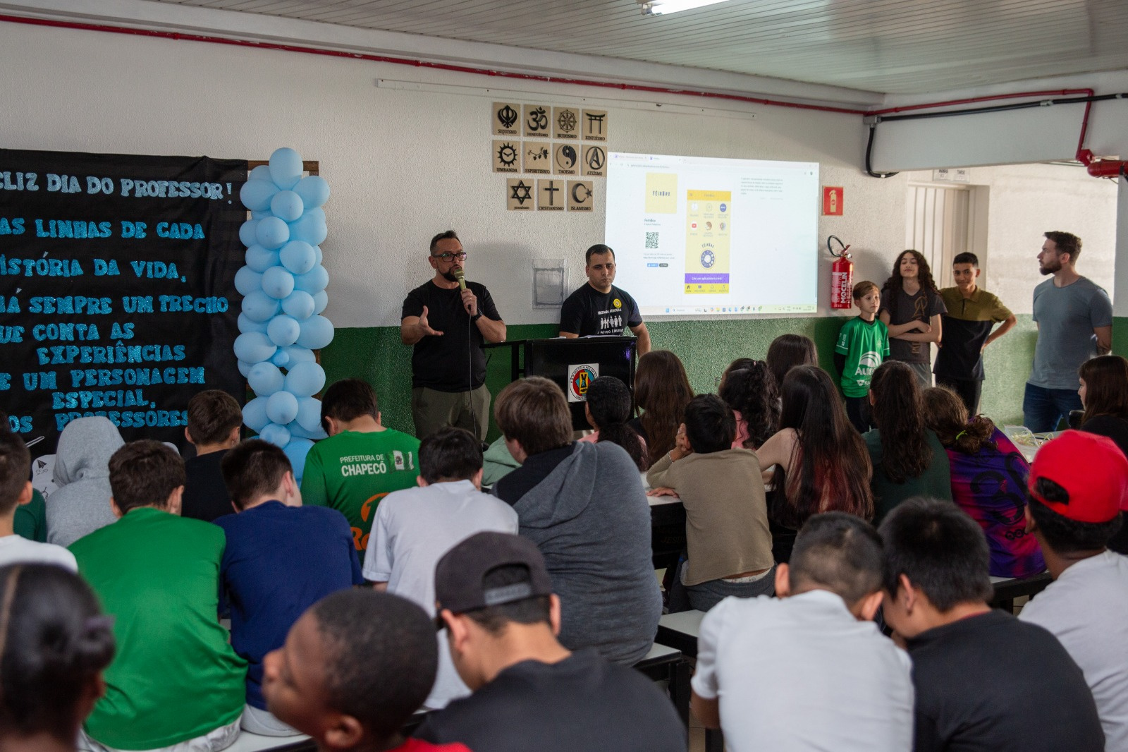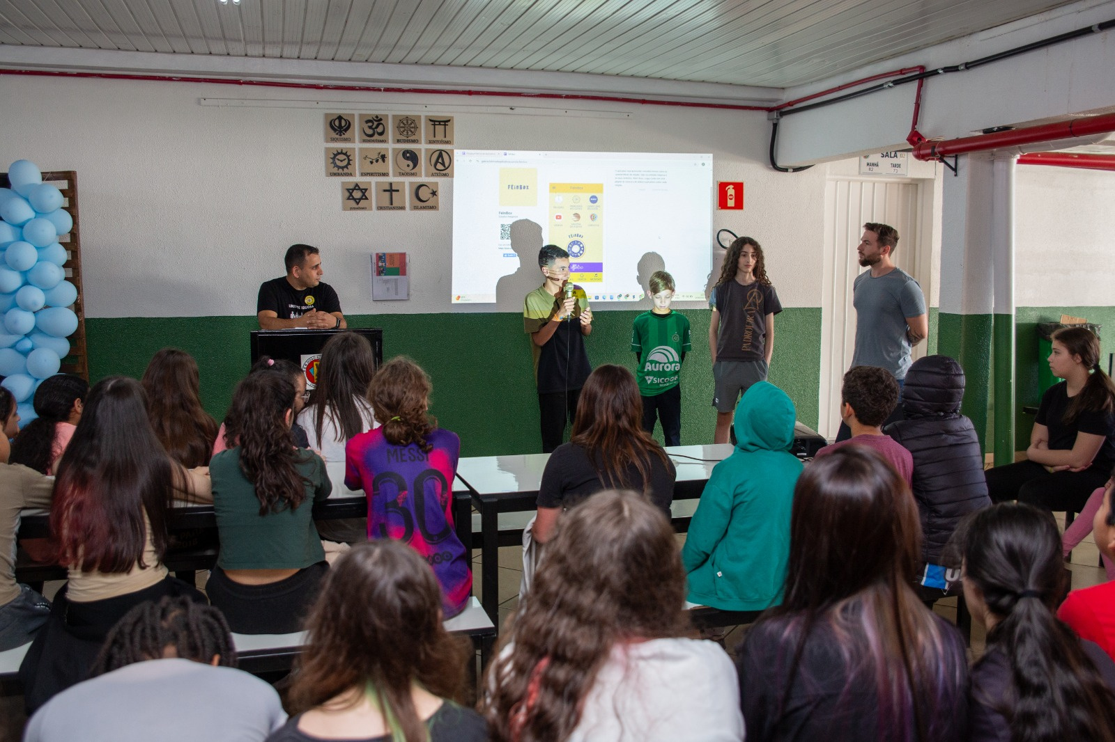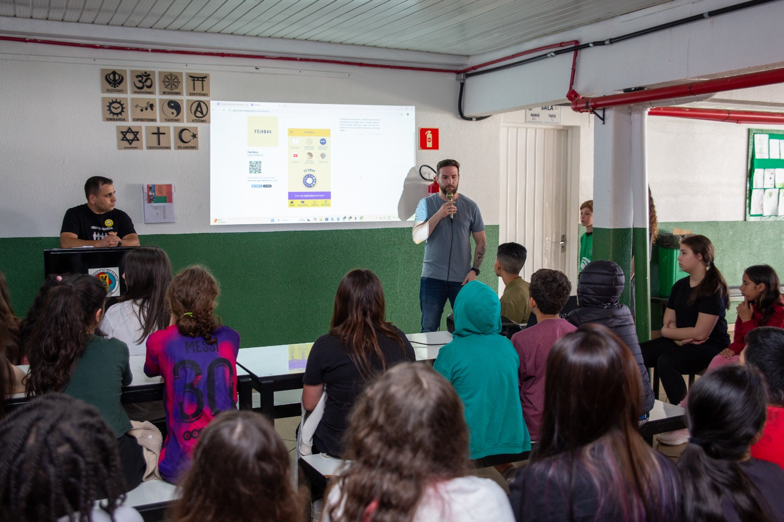 Os estudantes da EBM Diogo Alves da Silva, nas aulas de Ensino Religioso com o professor Cleberson Schneider, desenvolveram o aplicativo FéInBox, com o objetivo de apresentar as diferentes religiões presentes na sociedade e promover o respeito entre as diversas crenças.