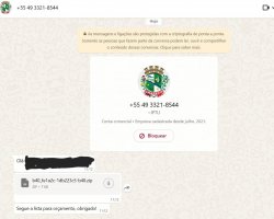 A Gerência de Tributos Imobiliários da prefeitura de Chapecó informa que o número de whatsapp (49) 3321-8544 foi clonado. Caso receba mensagem do mesmo, não abra os arquivos enviados e não faça o download.