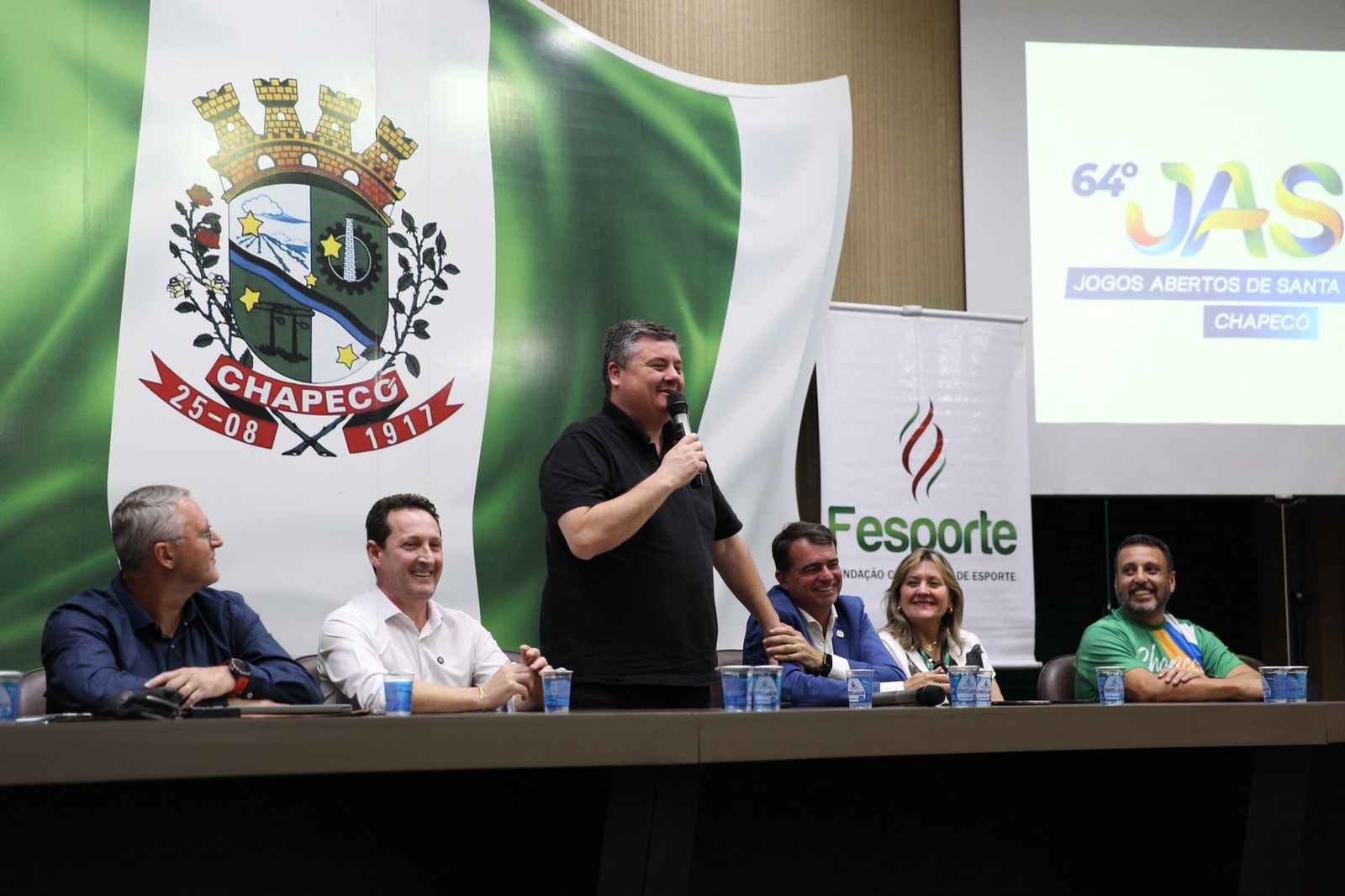 O presidente da Fesporte, Jeferson Ramos Batista, parabenizou a organização de Chapecó e destacou a sintonia entre estado e município para a realização de uma bela competição. O Congresso Técnico é o pontapé inicial dos Jogos Abertos. Tivemos boa participação no Congresso Técnico e transmissão para quem não pode vir pessoalmente. Estimamos que os JASC vão movimentar 16 mil pessoas entre atletas, dirigentes, equipes de apoio, imprensa e organização. Teremos 154 municípios representados nesta etapa, disse Jeferson.