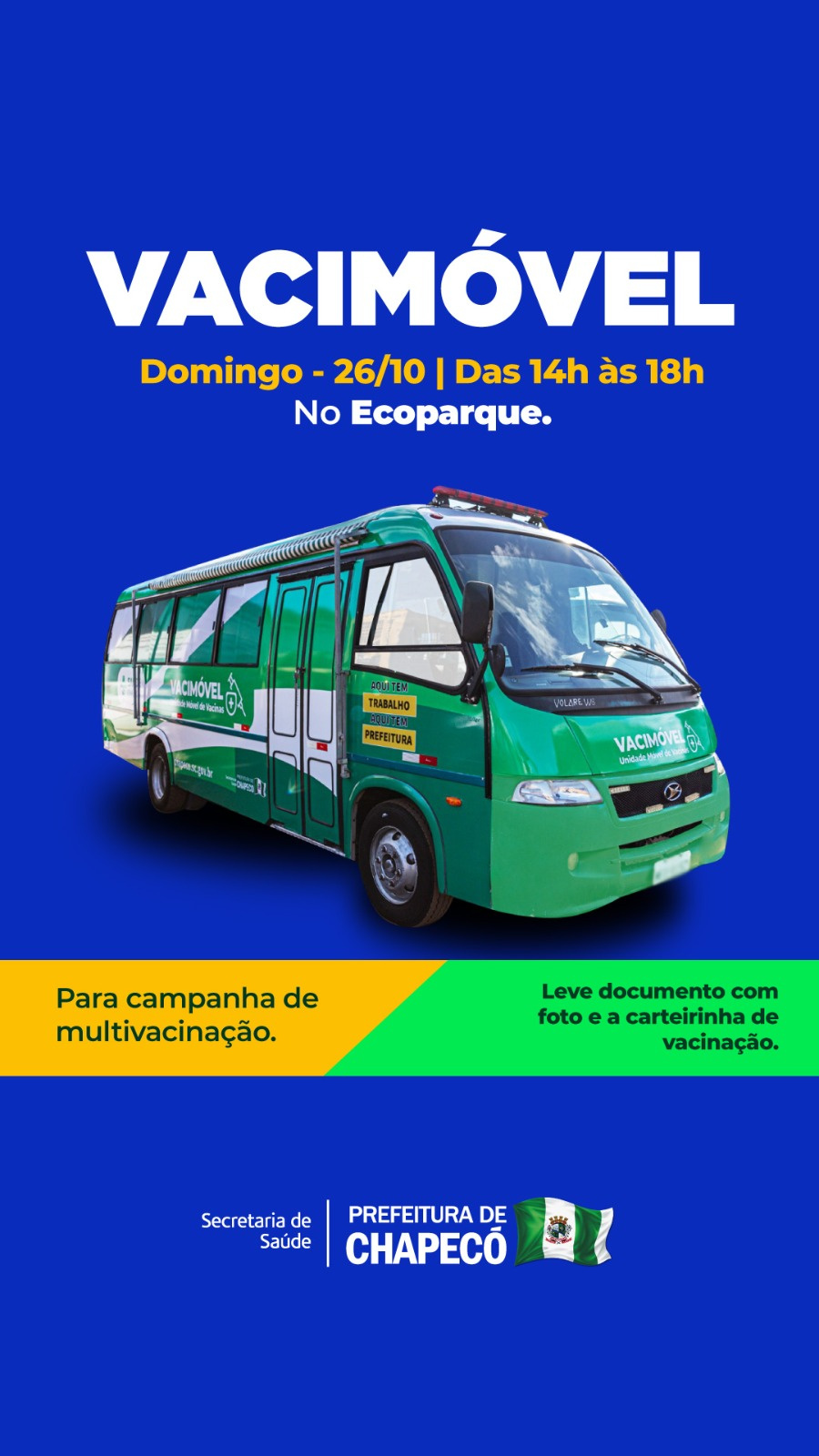 O ônibus do programa Saúde em Movimento estará na Praça Coronel Bertaso, vacinando o público das 9h às 17h. Já o Vacimóvel atenderá na região Oeste, no Fort Atacadista, também das 9h às 17h, oferecendo mais comodidade à população.