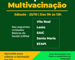 A Prefeitura de Chapecó, por meio da Secretaria da Saúde, realiza neste sábado (25) o Dia D da Campanha Nacional de Multivacinação. Ela faz parte de uma campanha nacional, promovida pelo Ministério da Saúde, que vai até 31 de outubro. A maioria dos municípios fez o Dia D no sábado passado mas Chapecó optou por fazer neste final de semana devido à Efapi do Brasil.