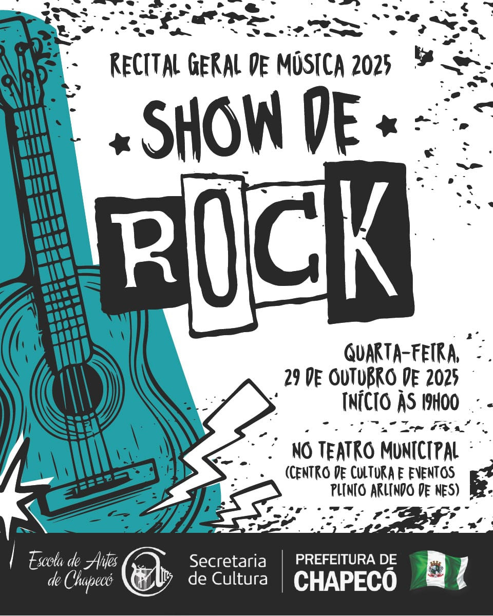 A prefeitura de Chapecó, por meio da secretaria de Cultura, com organização da Escola de Artes de Chapecó, promove nesta quarta-feira (29), o Recital Geral de Música - Edição 2025. O evento inicia às 19h, no Teatro Municipal do Centro de Cultura e Eventos Plinio Arlindo De Nes.