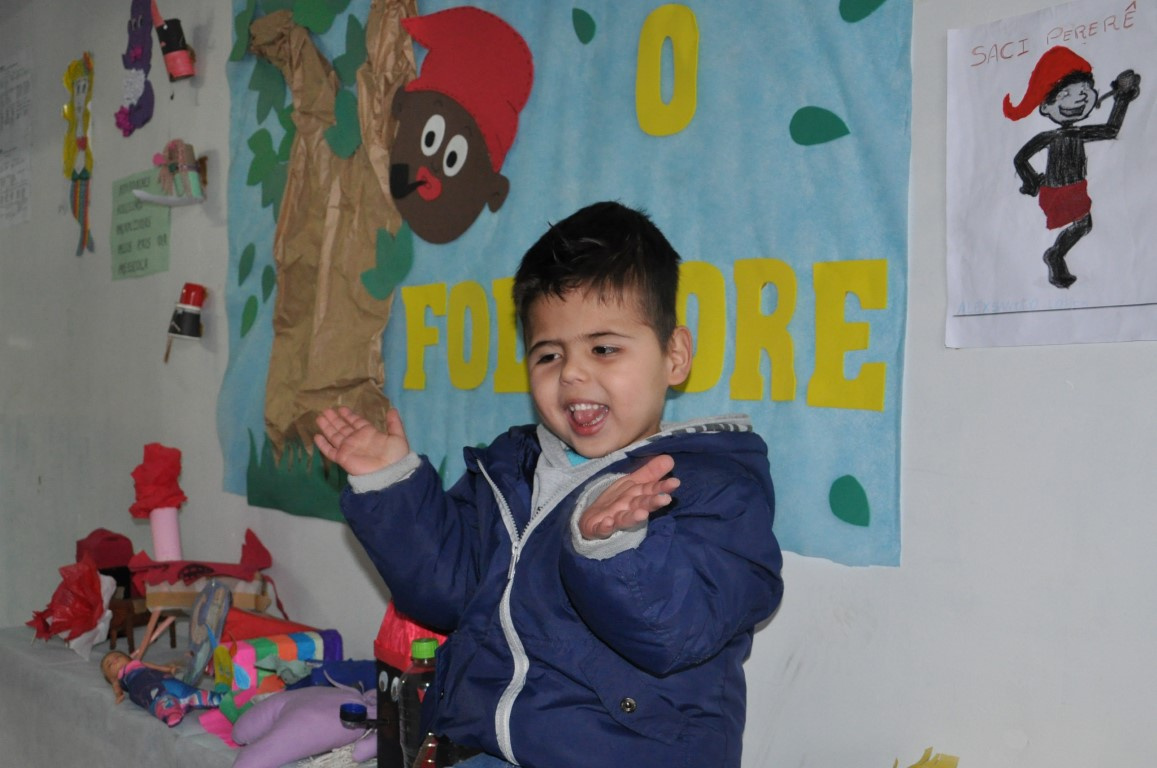 Em sala de aula, as crianças tiveram acesso a muitos suportes diferentes para compreenderem o Folclore e seus personagens: livros, filmes, contações de histórias, desenhos e colagens, e por fim a atividade da família que serviu como incentivo à união e à participação das famílias no Ceim. Na casa do aluno João Bernardi Alves, reuniram-se quatro gerações na confecção do Saci-Pererê: a Bisavó, a avó, a mãe e o filho. A mãe de João, Vanessa Bernardi, disse que esse projeto foi uma boa ideia, porque uniu a família. Todos interagem com as crianças, usamos livro de história e de literatura para pesquisa para escolher qual faríamos e por sugestão do João, escolhemos o Saci, comentou.