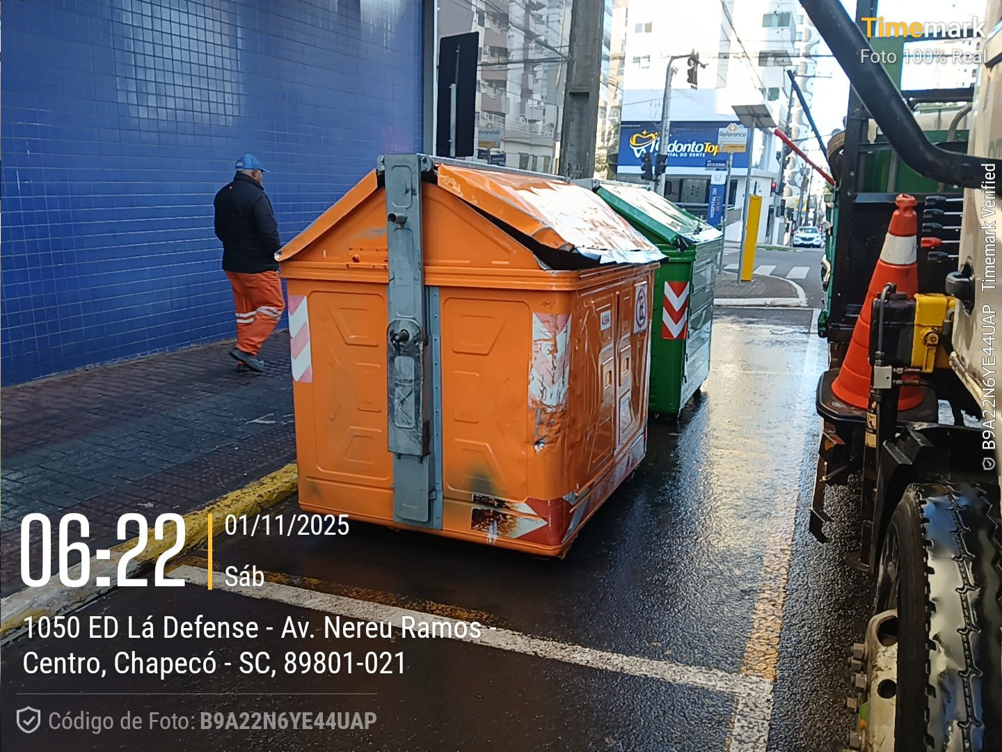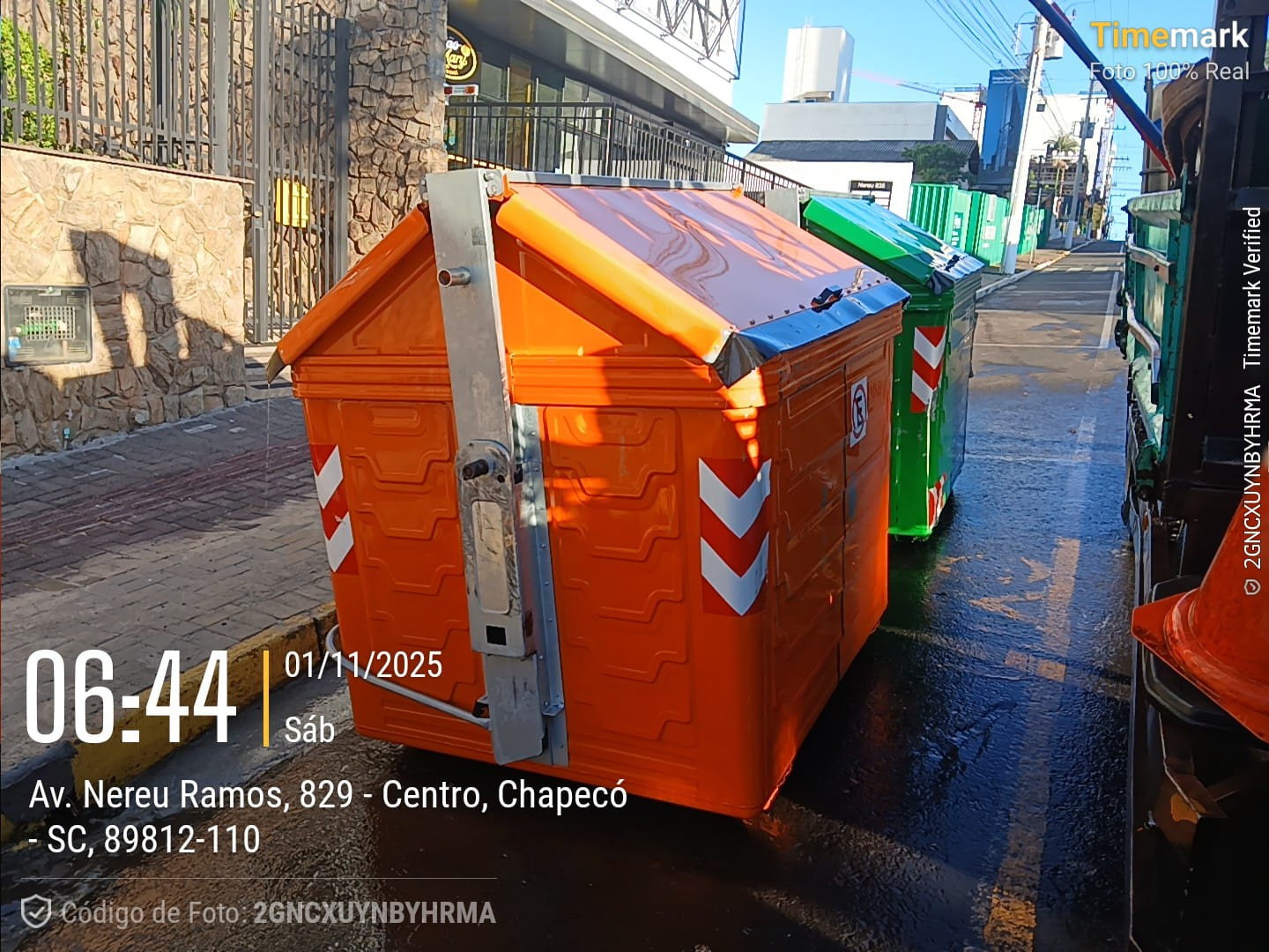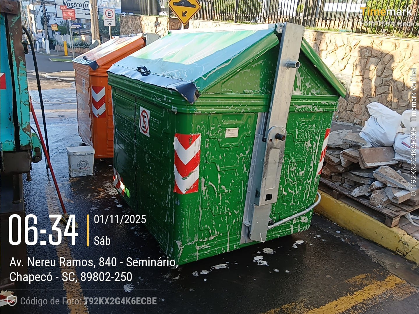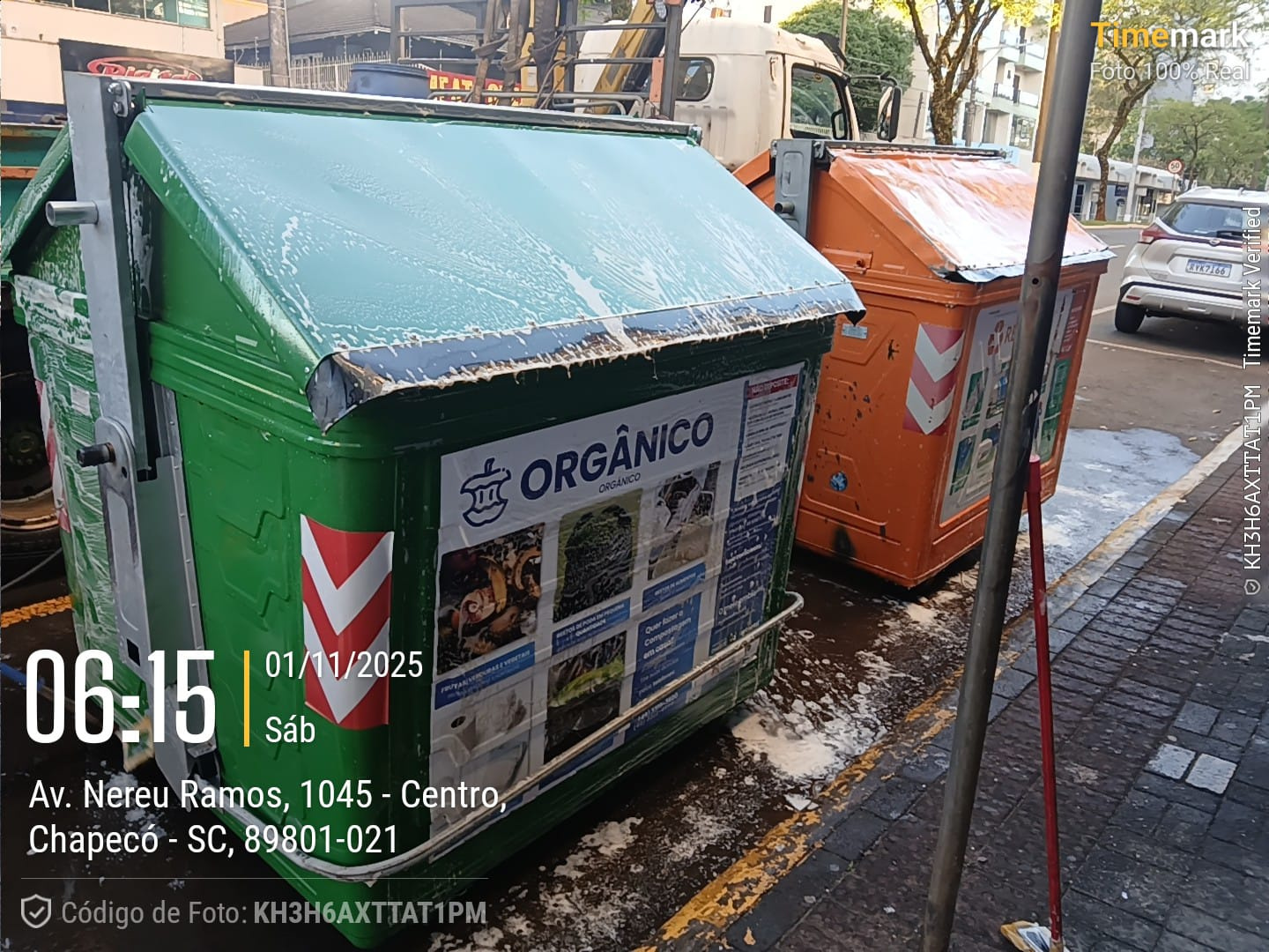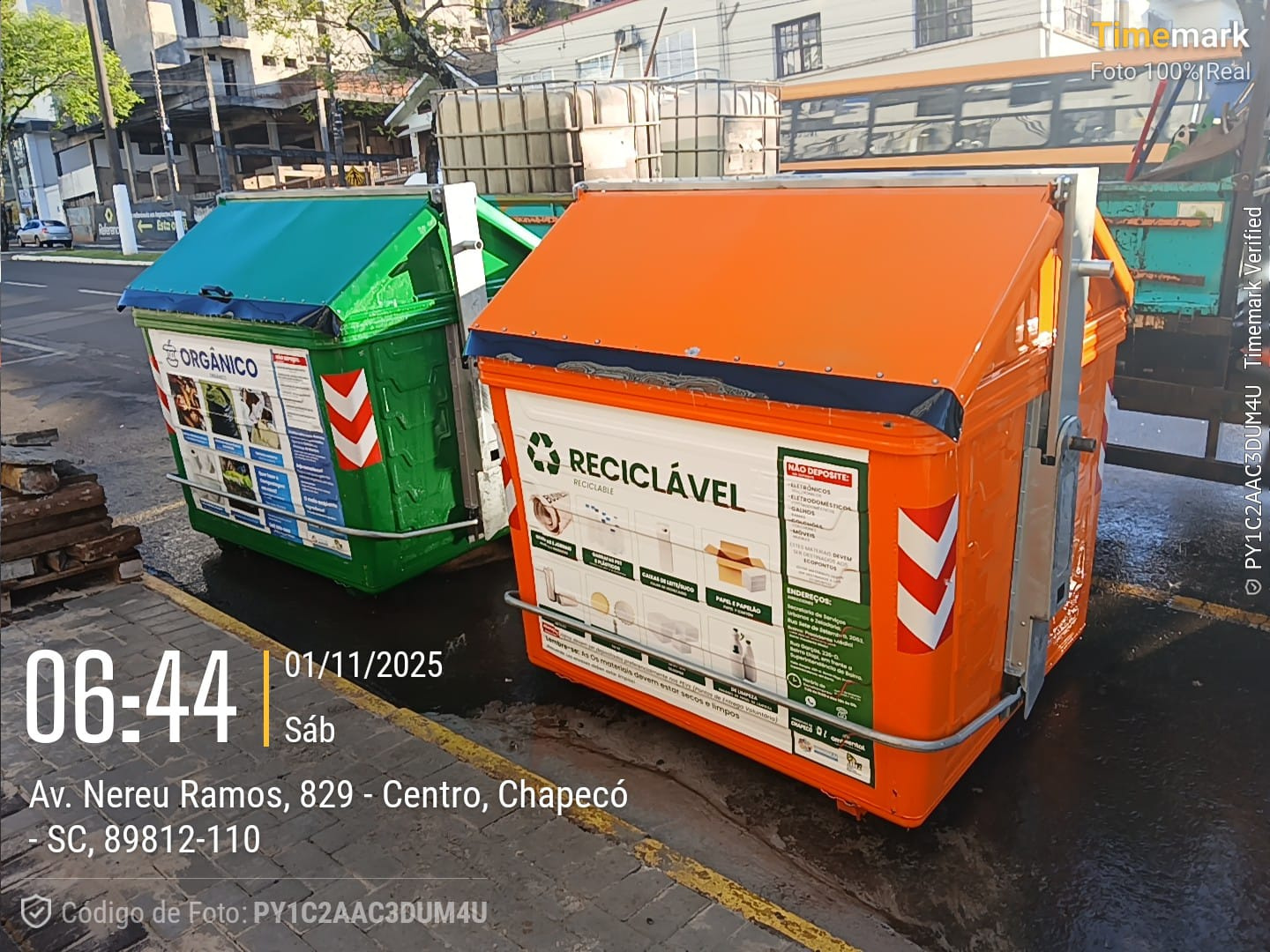 Chapecó conta com 1,2 mil contêineres de coleta automatizada de coleta de lixo seco e orgânico. Semanalmente é realizada a limpeza e higienização dos recipientes, para evitar mau cheiro e presença de insetos e roedores.