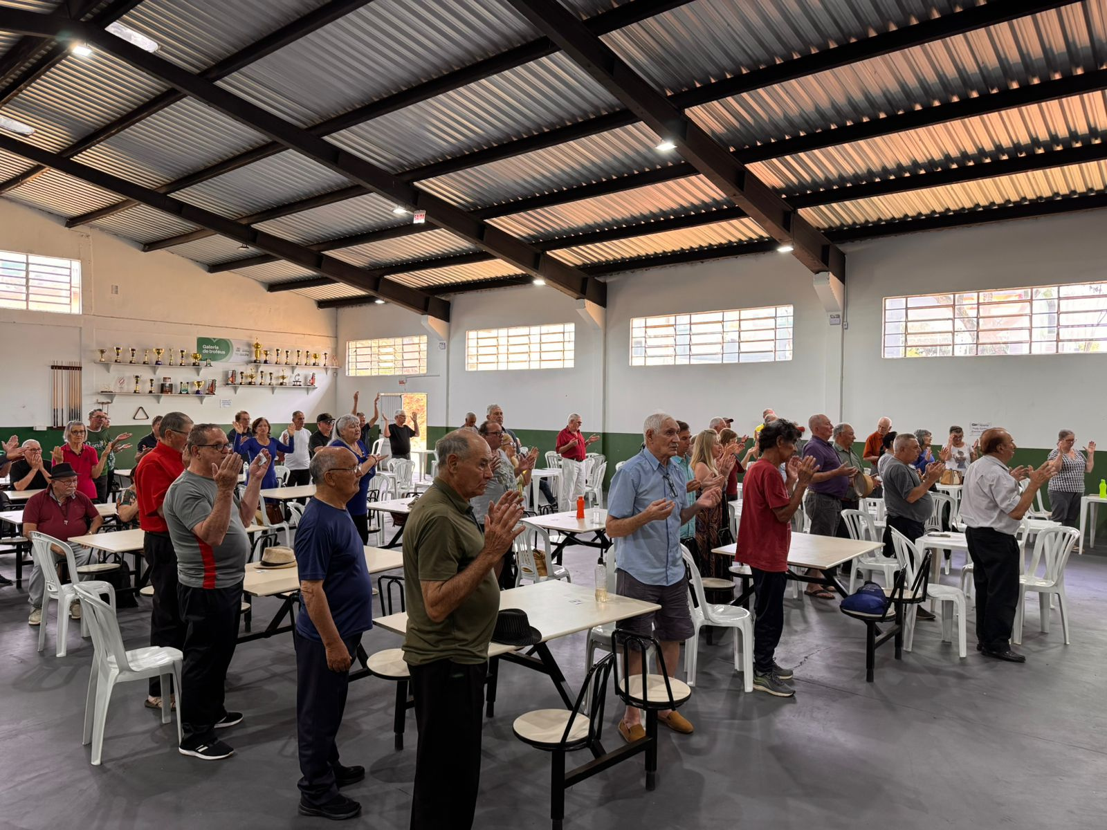 Logo nas primeiras horas, a academia de musculação já registrava grande movimentação, e os jogos de canastra, dominó e sinuca marcaram o início das atividades do dia. A manhã também contou com aulas de pilates e caminhada orientada com alongamentos, que animaram os grupos que chegaram cedo.
