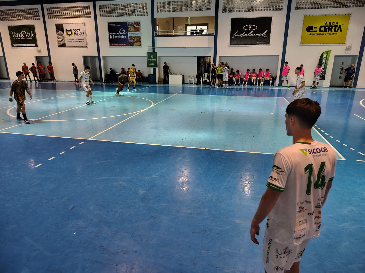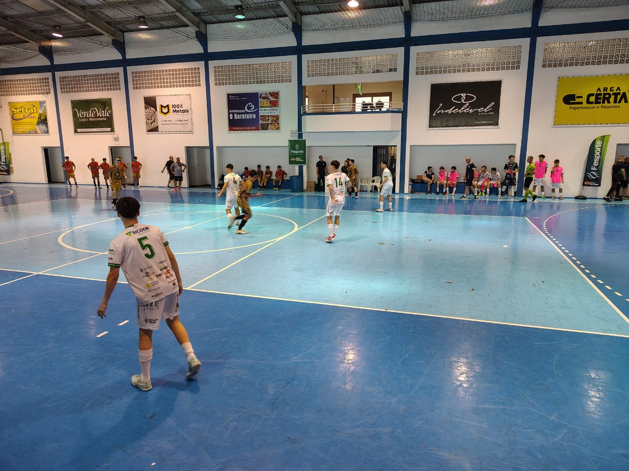 O futsal masculino fez uma grande partida contra Criciúma e aplicou uma goleada por 5 a 1. Amanhã, a equipe volta à quadra às 13h30 para enfrentar Rio do Sul.