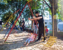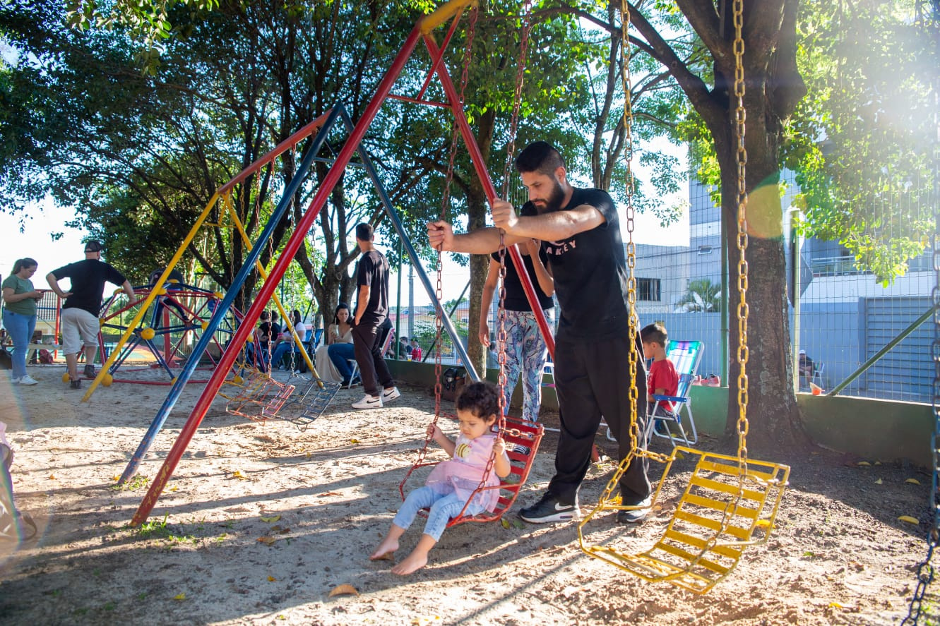 Durante o encontro, o pátio da instituição foi transformado para que crianças e familiares pudessem participar de diversas estações com brincadeiras tradicionais, como pular corda, elástico, cinco marias, amarelinha, carrinho de rolimã, corrida de saco, peteca, cabo de guerra, entre outras brincadeiras que fizeram parte da infância de muitas gerações.