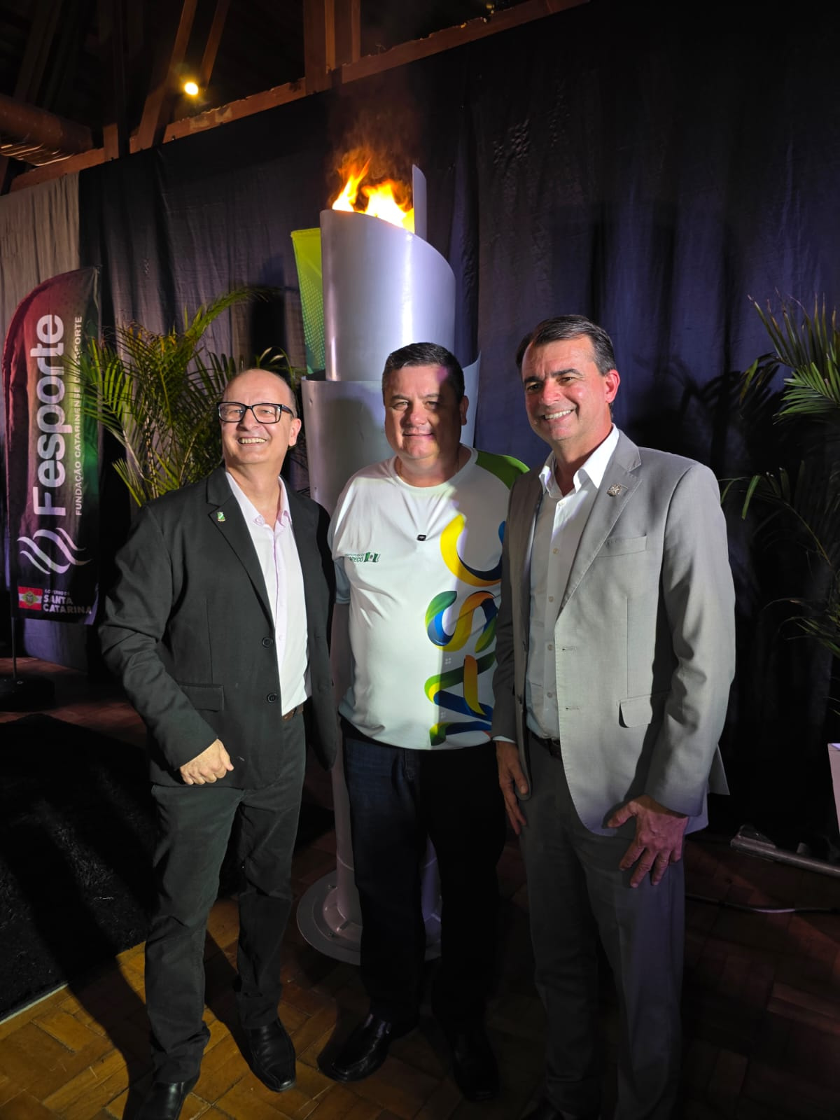 Nesta quinta-feira (06), foi realizada na cidade de Brusque a cerimônia de acendimento do Fogo Simbólico dos Jogos Abertos de Santa Catarina (JASC). O vice-prefeito de Chapecó e presidente da Comissão Central Organizadora (CCO) dos JASC, Valmor Júnior Scolari, esteve presente no evento e recebeu os símbolos oficiais dos jogos.