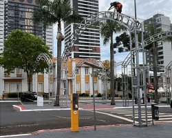 A Avenida Getúlio Vargas, que tem estado fechada parcialmente nesta semana, para decoração dos arcos, voltou a ser fechada nesta sexta-feira, totalmente, entre as ruas Jorge Lacerda e Floriano Peixoto. Além da decoração também houve isolamento para o ato de Solenidade Alusiva ao 22° aniversário, do 4° Comando