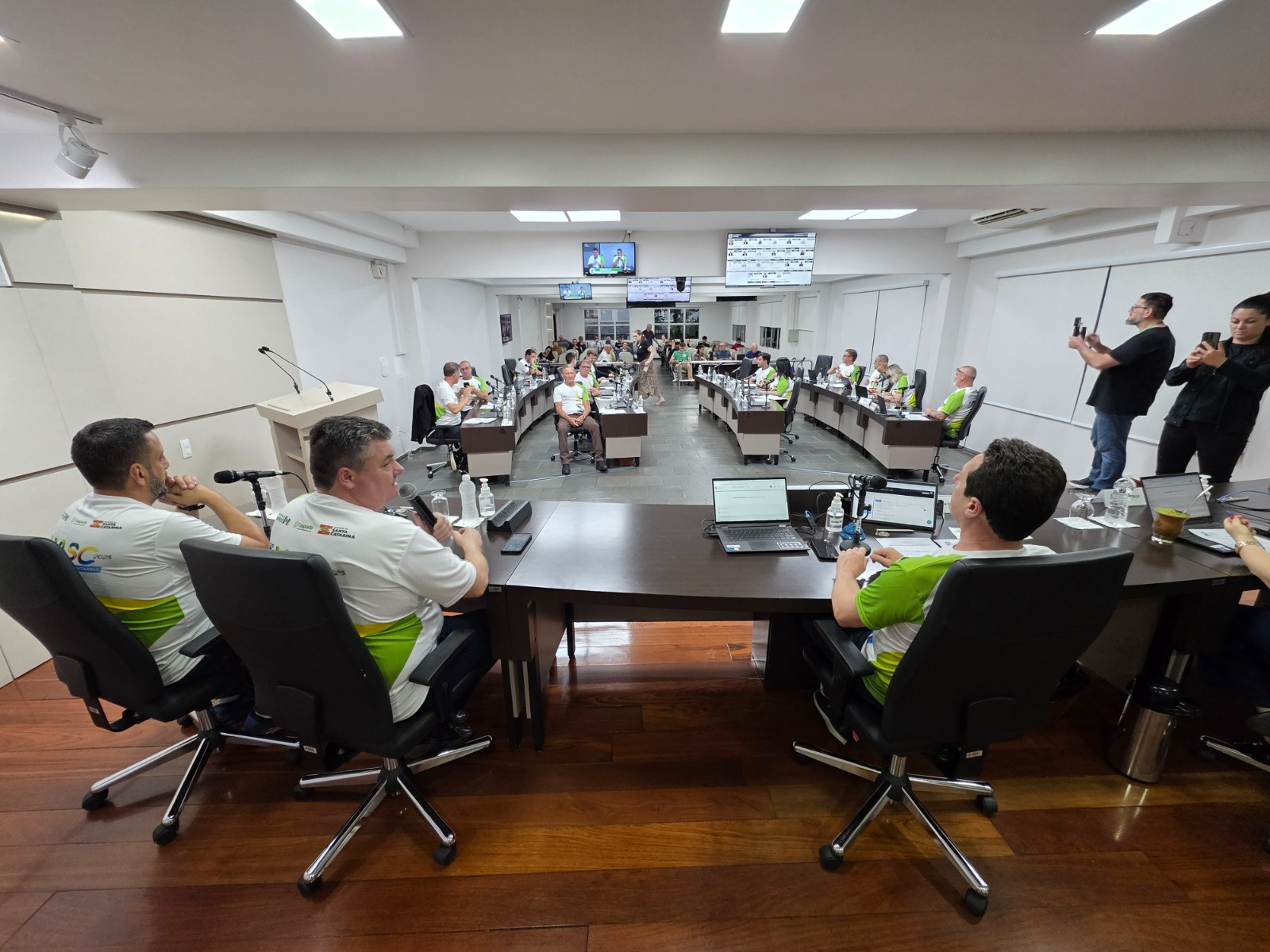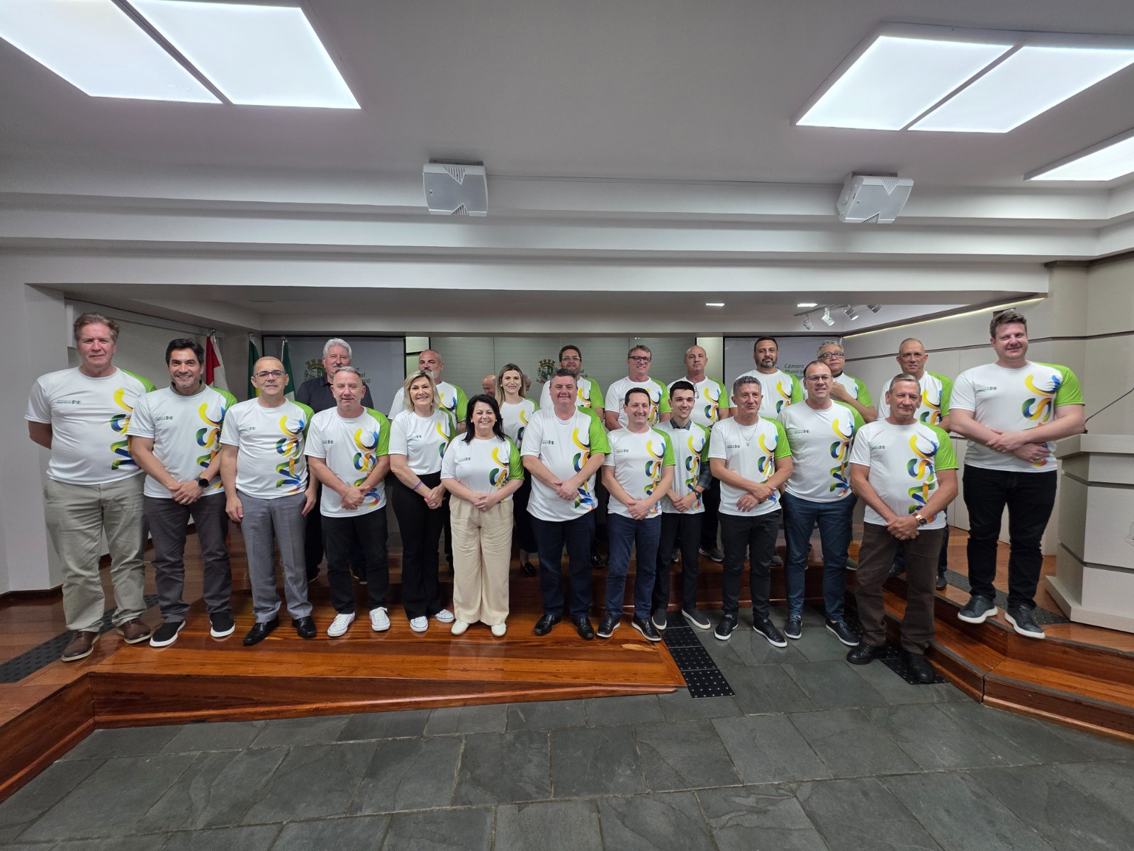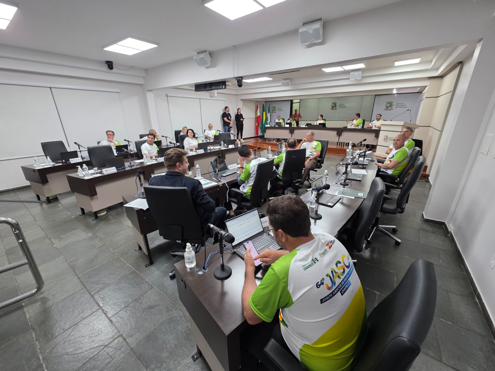 O vice-prefeito de Chapecó e presidente da Comissão Central Organizadora dos JASC, Valmor Junior Scolari, esteve nesta sexta-feira (07) na sessão da Câmara de Vereadores de Chapecó. O objetivo da visita foi mostrar os preparativos do município para sediar os jogos, como está a preparação para receber os atletas e delegações e também agradecer pelo apoio das equipes do legislativo municipal, que serão responsáveis pela recepção de todos os envolvidos com os jogos. Estiveram com ele o secretario de Esportes e Juventude, Agnaldo Veriato Pereira e o gerente de Esportes, Mario Tomasi.