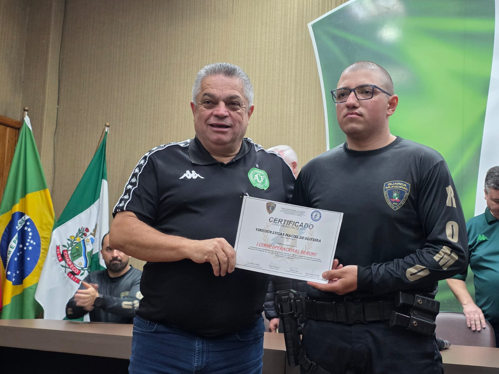 Vinicius Lucas Maciel de Oliveira, Wesley da Silva Pacheco, Guilherme Martins, Rommel Henrique Andrade Scherer, Gabriel de Medeiros Idalgo. Esses são os formandos do grupo especializado da Guarda Municipal o Ronda Ostensiva Municipal (ROMU) uma unidade de elite da GM. A formatura aconteceu no sábado (08) no auditório da prefeitura de Chapecó e contou com a presença de autoridades, familiares dos formandos e representantes das Forças de Segurança de Chapecó.