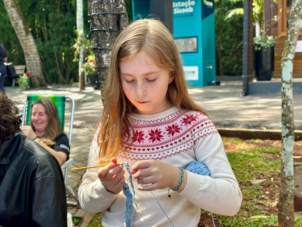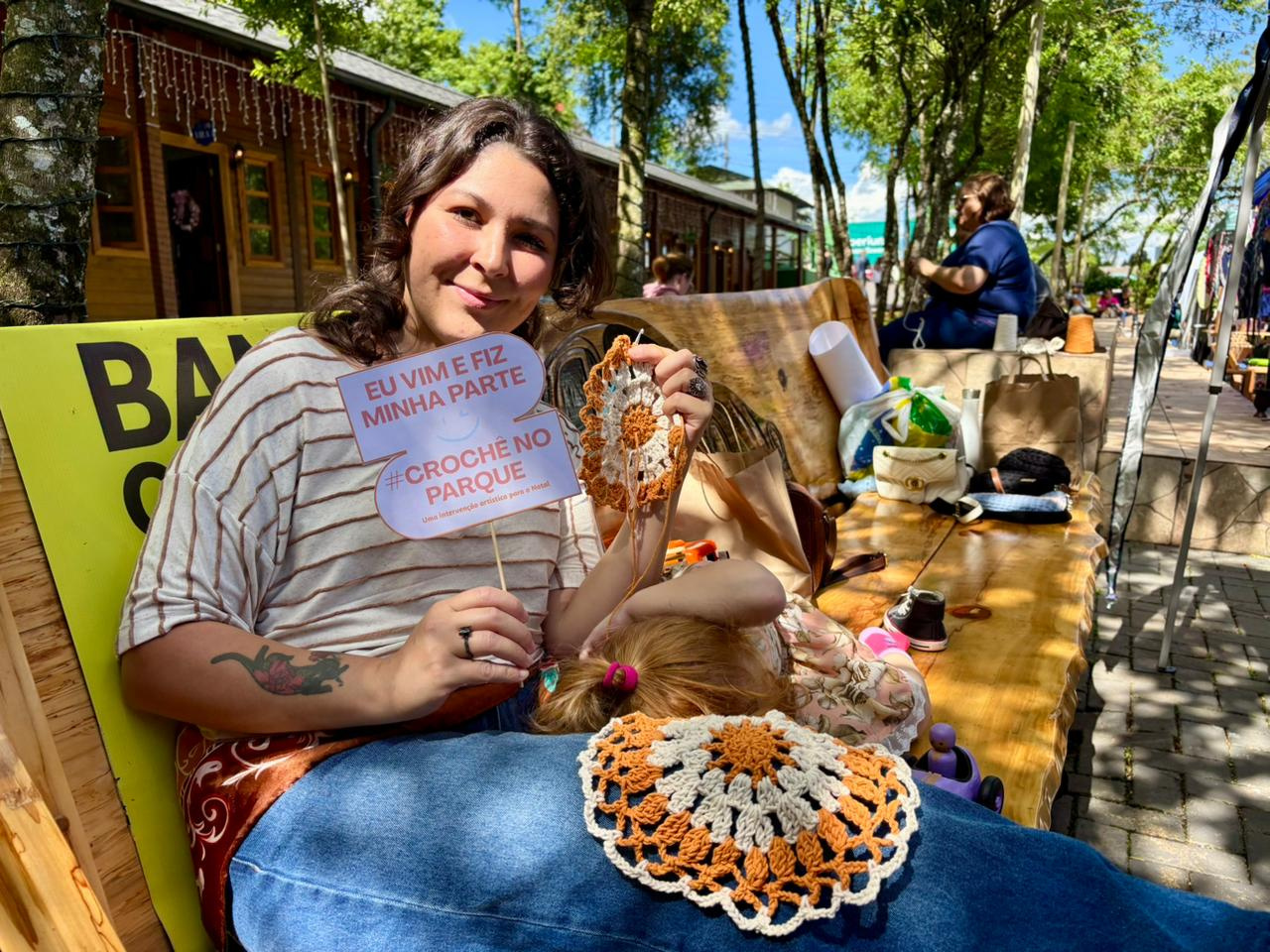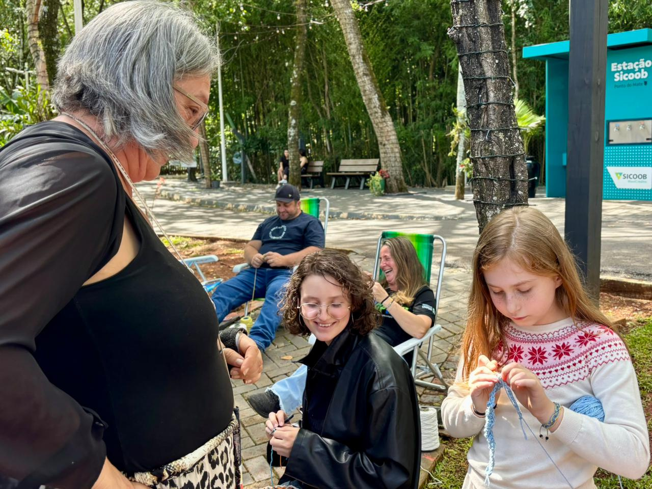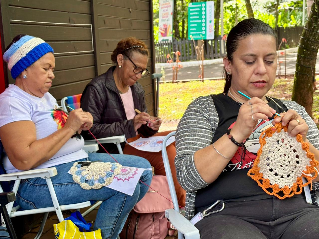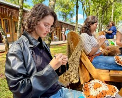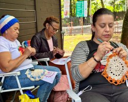 A prefeitura de Chapecó, por meio da secretaria de Cultura, realizou na tarde deste domingo (9), no Ecoparque, uma atividade de crochê colaborativo.